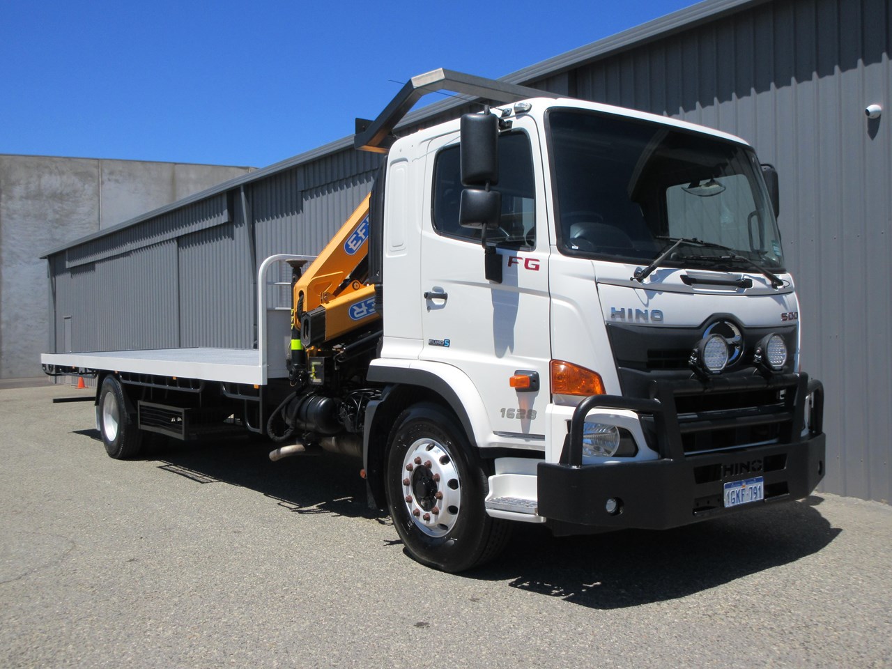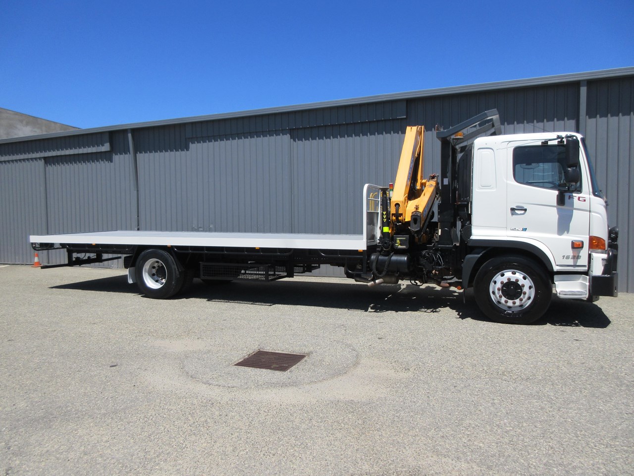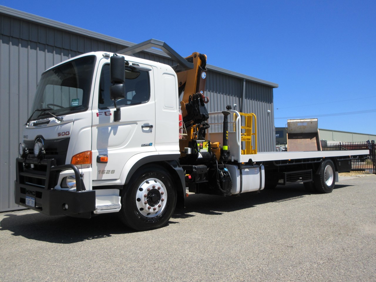 2017 - 500 Series FG 1628, fitted with a 7700mm x 2500mm Heavy Duty Steel tray, flush fitted sea container twist locks and gate pockets, Effer 100/3S Radio Remote control crane with hydraulic stabilser legs, twin under tray glut storage racks, under tray lockable tool box. Rogers Combo Pintle Hook and Ball style towing equipment, Air trailer brake system with couplings to the rear & hand controller in the cab, Fold down step to the left front of the tray with a self closing gate. ROPS installed with high level lighting including LED amber beacon. Lockable Battery Isolator and two E Stops fitted. This is a Stunning one owner truck that wants for nothing. GVM: 15,500 & GCM: 32,000. Looks and drives great. Crane is in certification until mid 2026.