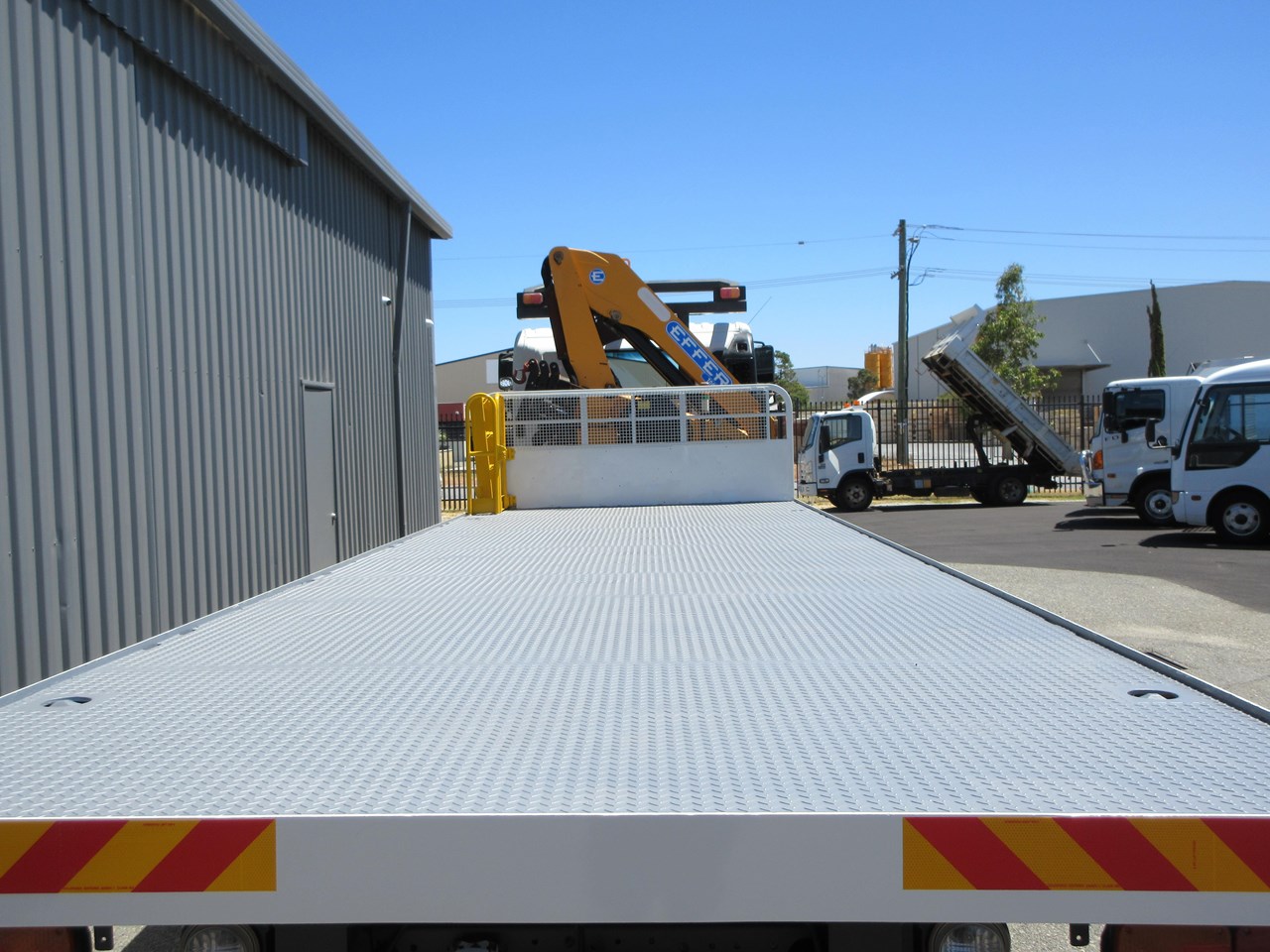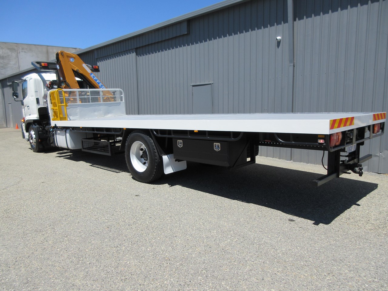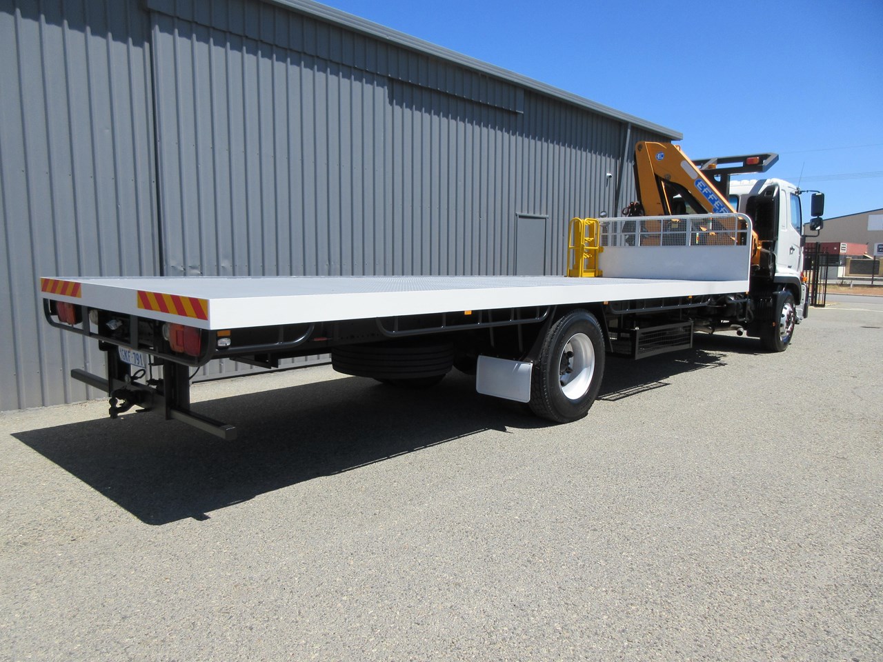 2017 - 500 Series FG 1628, fitted with a 7700mm x 2500mm Heavy Duty Steel tray, flush fitted sea container twist locks and gate pockets, Effer 100/3S Radio Remote control crane with hydraulic stabilser legs, twin under tray glut storage racks, under tray lockable tool box. Rogers Combo Pintle Hook and Ball style towing equipment, Air trailer brake system with couplings to the rear & hand controller in the cab, Fold down step to the left front of the tray with a self closing gate. ROPS installed with high level lighting including LED amber beacon. Lockable Battery Isolator and two E Stops fitted. This is a Stunning one owner truck that wants for nothing. GVM: 15,500 & GCM: 32,000. Looks and drives great. Crane is in certification until mid 2026.