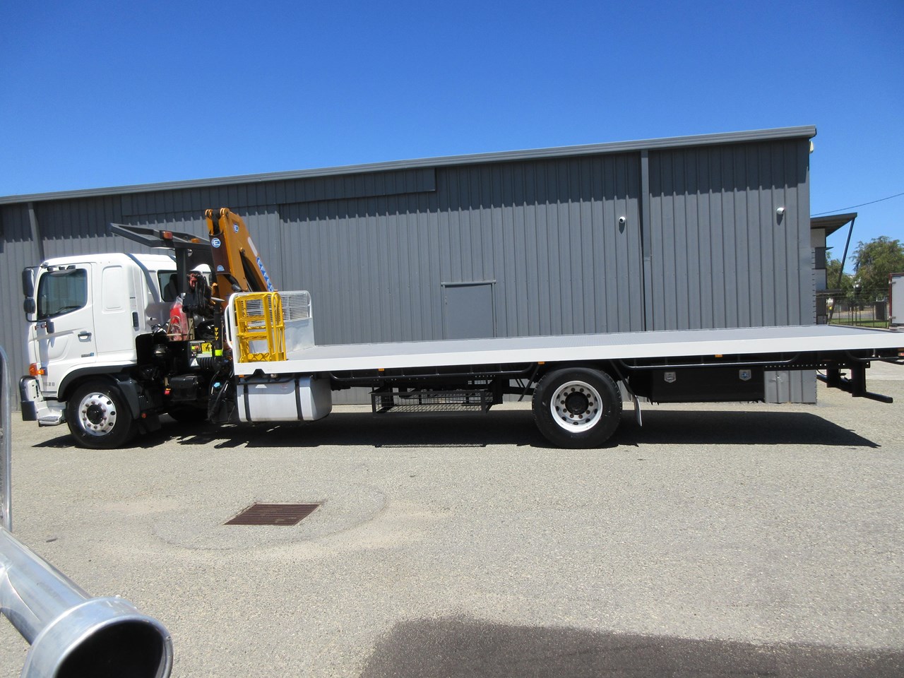 Hino J08EWA 6 cylinder 280 Hp engine with a Allison 3000 Series Automatic Transmission, leaf springs front and rear, Hino always deliver the goods on safety including SRS Airbag, ABS Braking, collapsible steering column with reach and tilt adjustment, Factory fitted cruise control, electric adjustable Mirrors with defroster. Electronic adjustable headlights, Overhead storage lockers with storage pockets in the dash & door also, Storage bunk behind the seat, 40 channel 2x way radio, Genuine Hino Alloy Bull Bar with LED spotlights. ISRI Air ride seat with many adjustments for the driver and also air ride seat for the passenger. AM/FM Radio with Blu Tooth connectivity, Charging system for the crane remote all included. Ready for its new home today ! All books & manuals etc spare keys included.