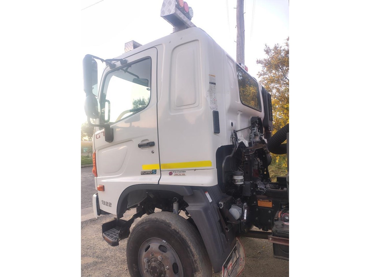 2012 Hino 500 GT 1322 4x4 Crane Truck, steel tray fitted with container pins, Fitted with Palfinger PK9001EH with remote, 13 t GVM, 21 t GCM. High and low range 4x4. 220hp turbo diesel intercooled with 6 speed manual gearbox Will be sold workshop checked, serviced and prepared for roadworthy.