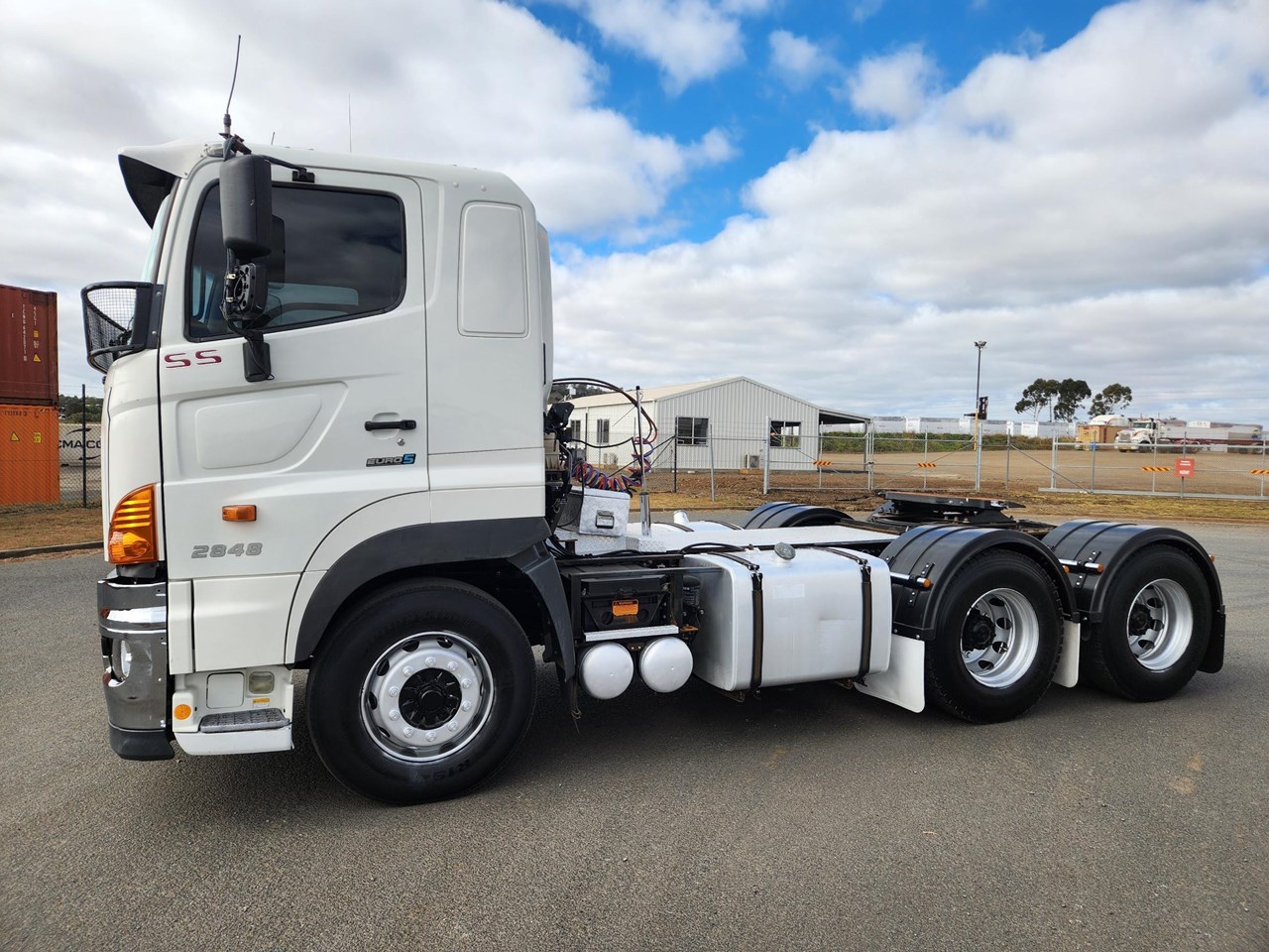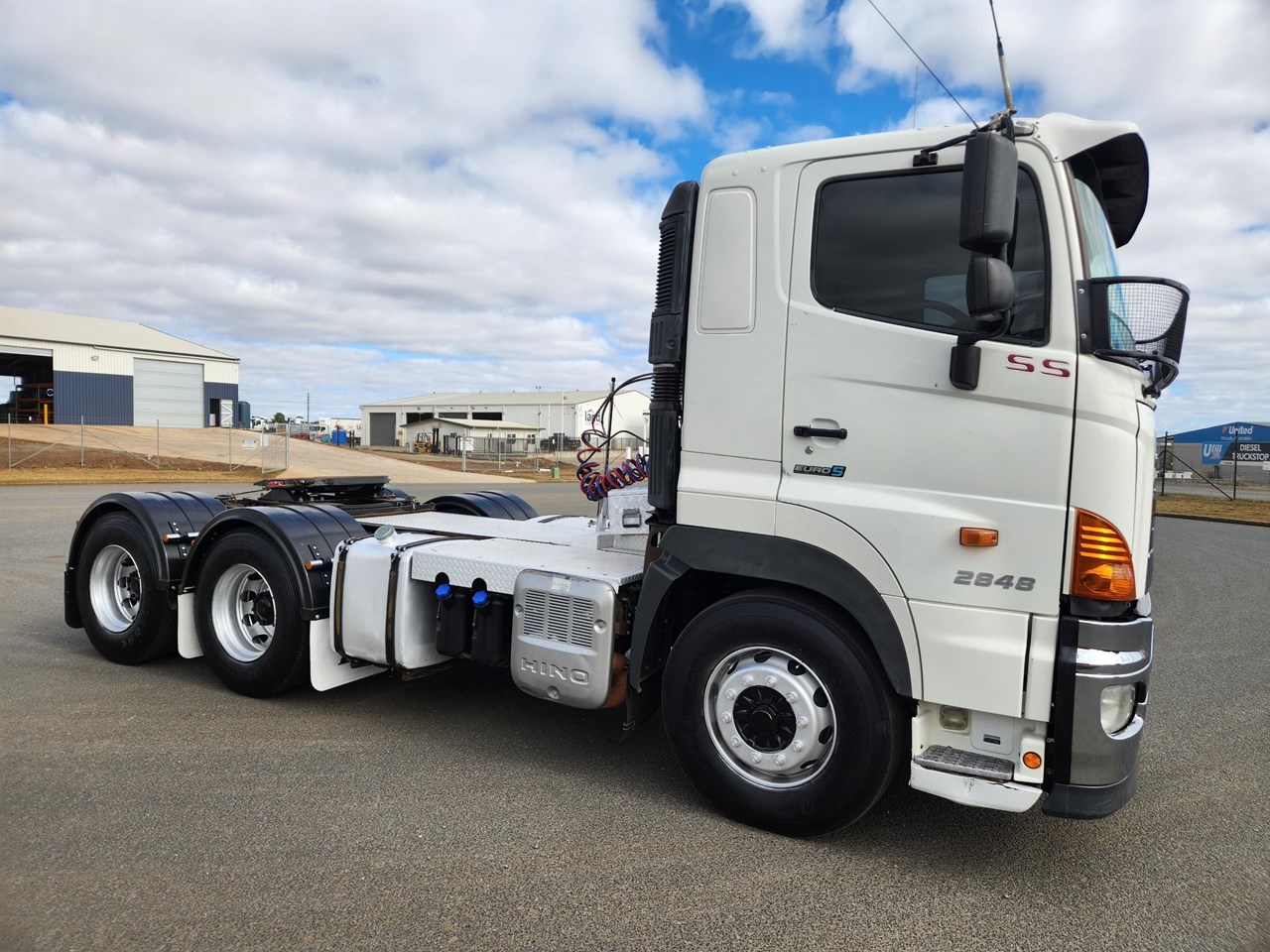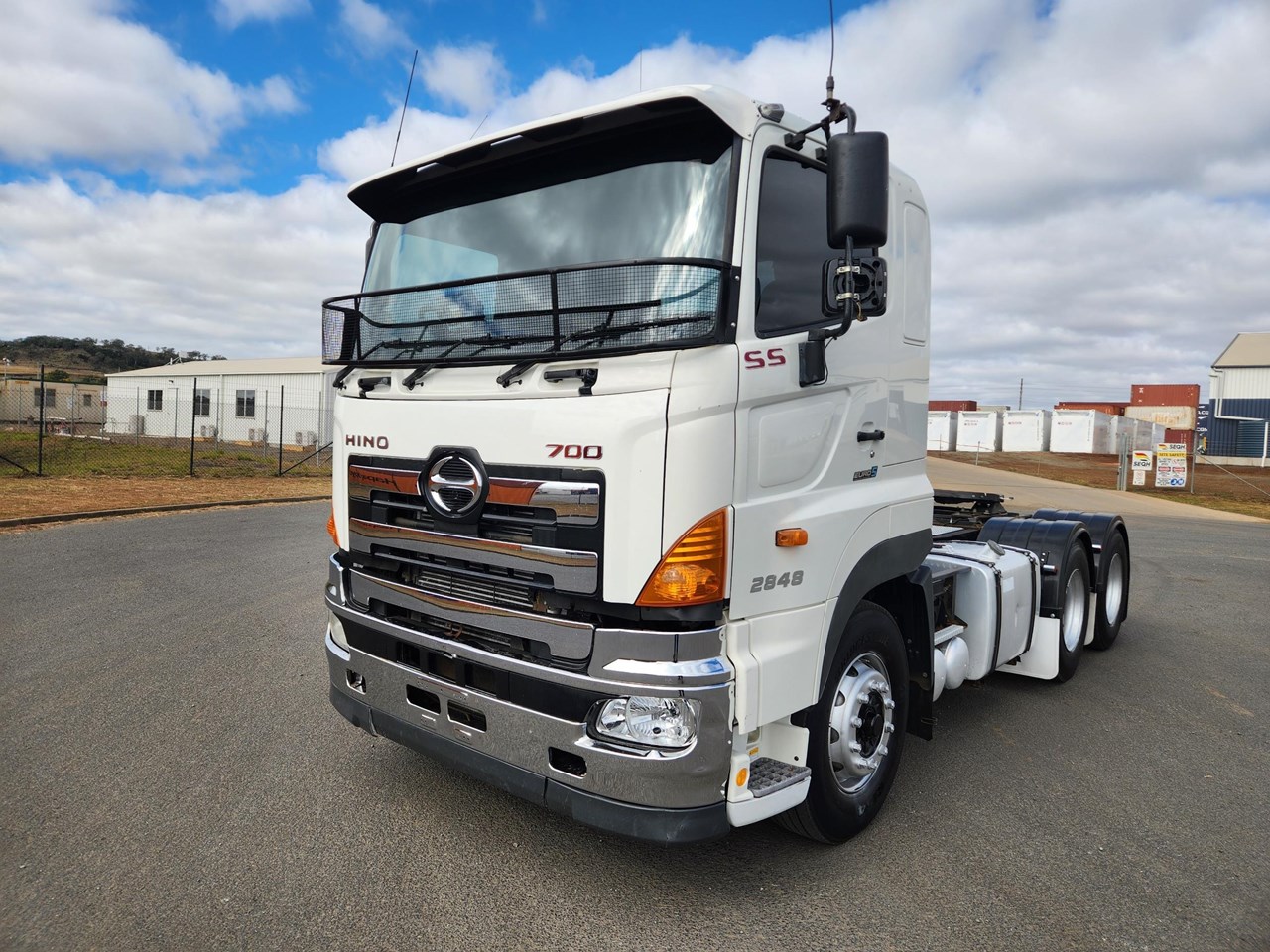 2012 HINO 700 PRIME MOVER. FASTRONIC 12 SPEED AUTO TRANSMISSION. 480 HP HINO ENGINE. DRUM BRAKES WITH ABS. HENDRICKSON AIRBAG REAR SUSPENSION. PARABOLIC FRONT SPRINGS. FITTED WITH JOST 50MM GREASE TYPE TURNTABLE. CAN BE B DOUBLE RATED. NO HYDRAULICS. WILL COME WITH CURRENT QLD ROADWORTHY