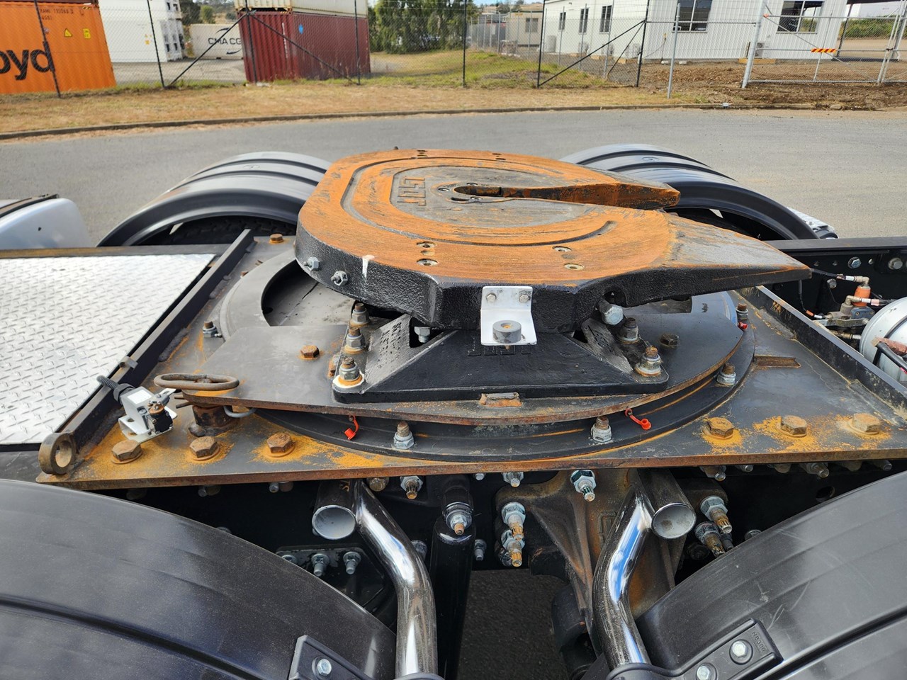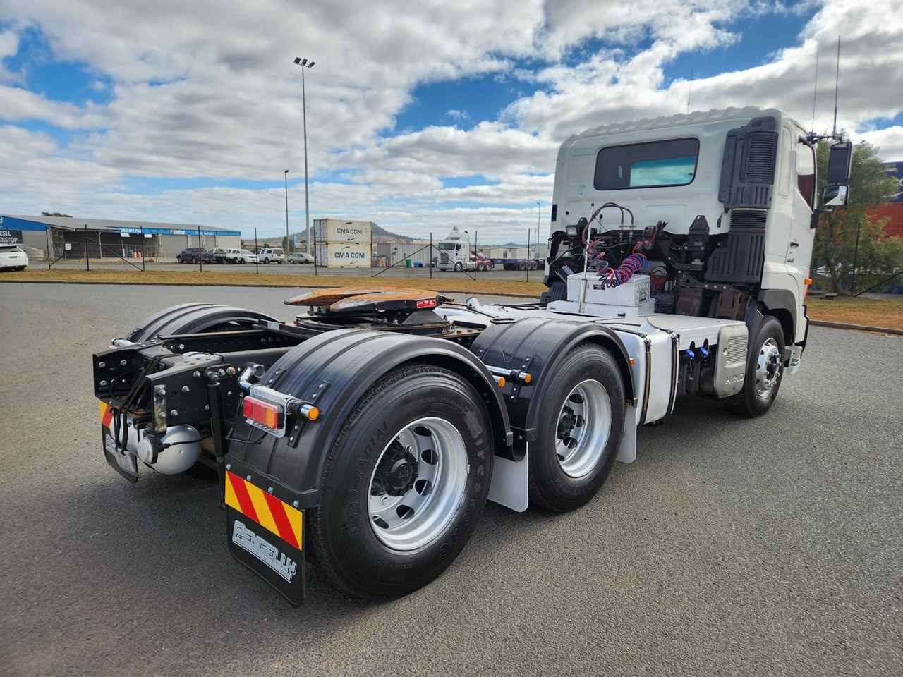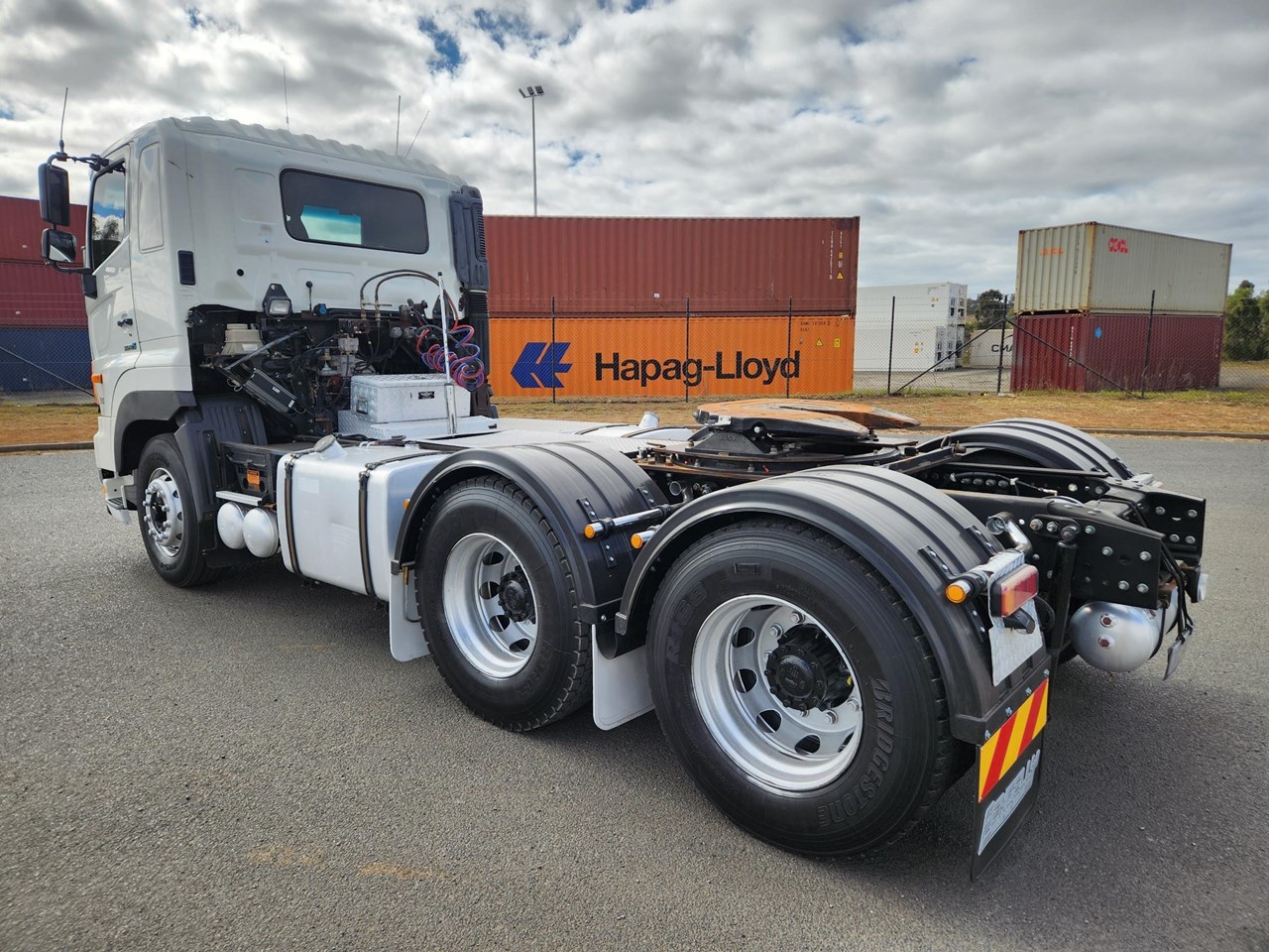 2012 HINO 700 PRIME MOVER. FASTRONIC 12 SPEED AUTO TRANSMISSION. 480 HP HINO ENGINE. DRUM BRAKES WITH ABS. HENDRICKSON AIRBAG REAR SUSPENSION. PARABOLIC FRONT SPRINGS. FITTED WITH JOST 50MM GREASE TYPE TURNTABLE. CAN BE B DOUBLE RATED. NO HYDRAULICS. WILL COME WITH CURRENT QLD ROADWORTHY