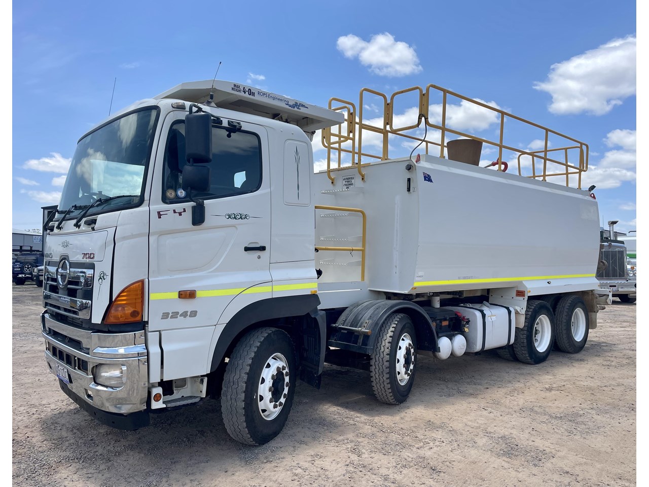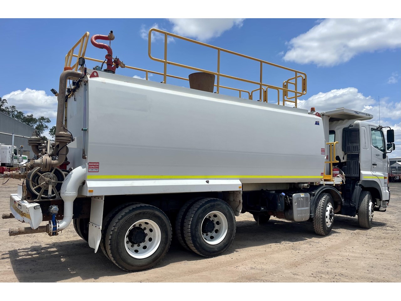 2013 Hino white 700 Series FY3248 Automatic transmission, Full Mine Spec PTO driven AES Equipment Solutions 20,000-liter water tank Twin steer x Boggie drive Water Carte showing low kilometers.