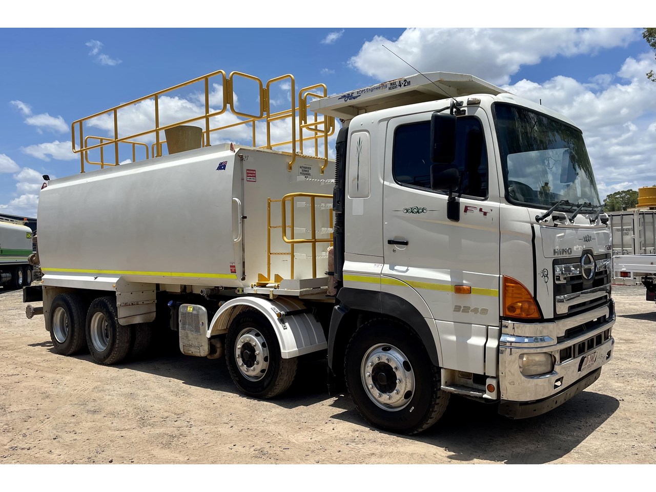 2013 Hino white 700 Series FY3248 Automatic transmission, Full Mine Spec PTO driven AES Equipment Solutions 20,000-liter water tank Twin steer x Boggie drive Water Carte showing low kilometers.