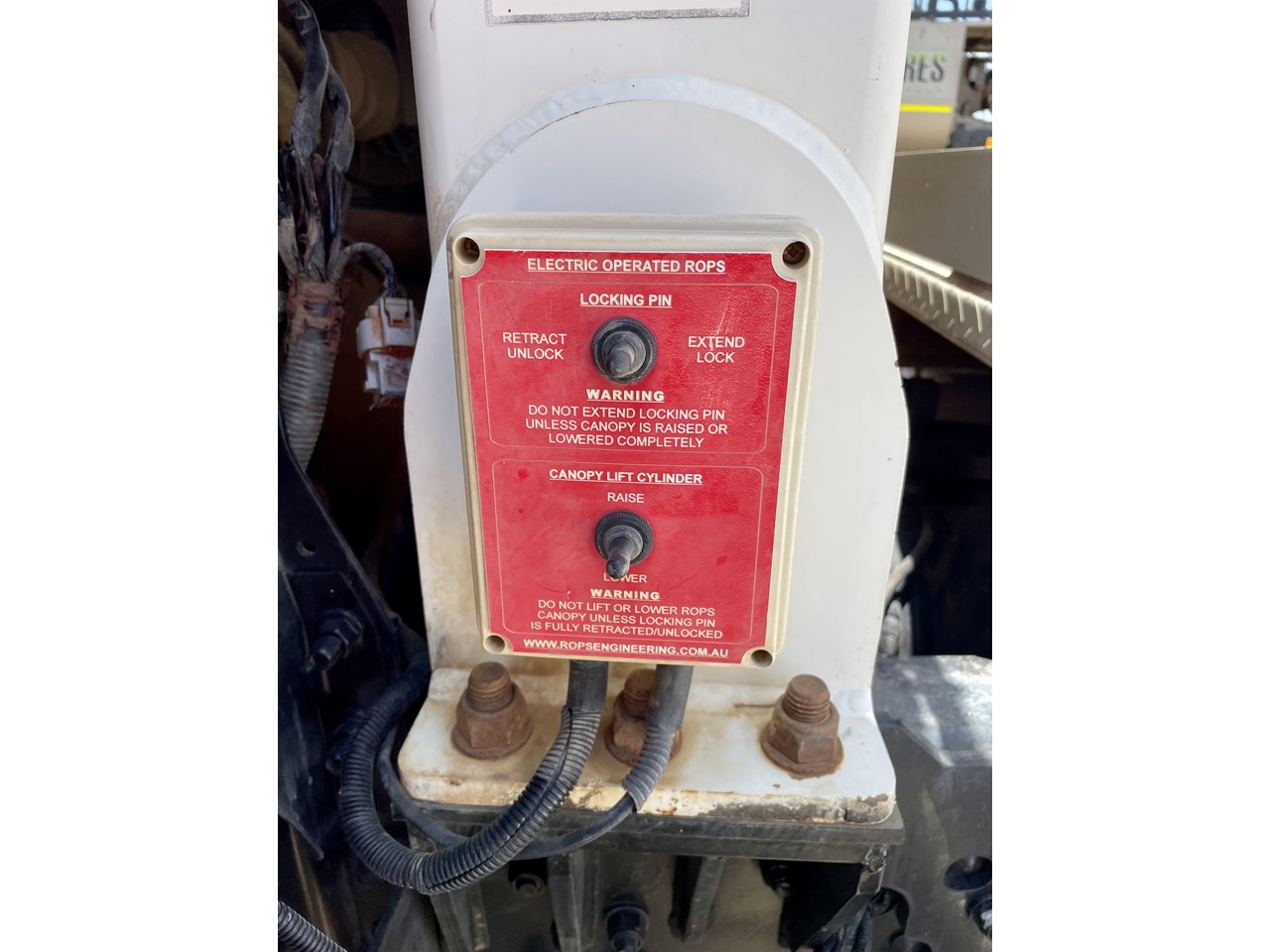 Fitted with AC Cab, UHF Radio, am/fm Radio, Turbo timer, Certified ROPs, Safety Handrails, lock out isolators, Amber flashing light, Cabin controlled. batter sprays/ side sprays/ center spray and dribble bar.
