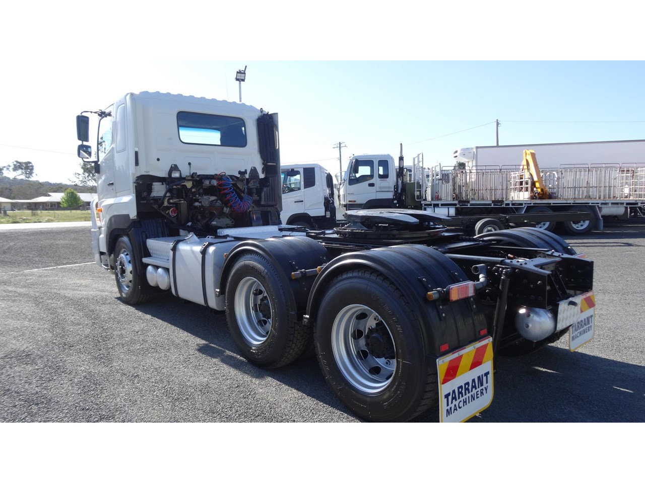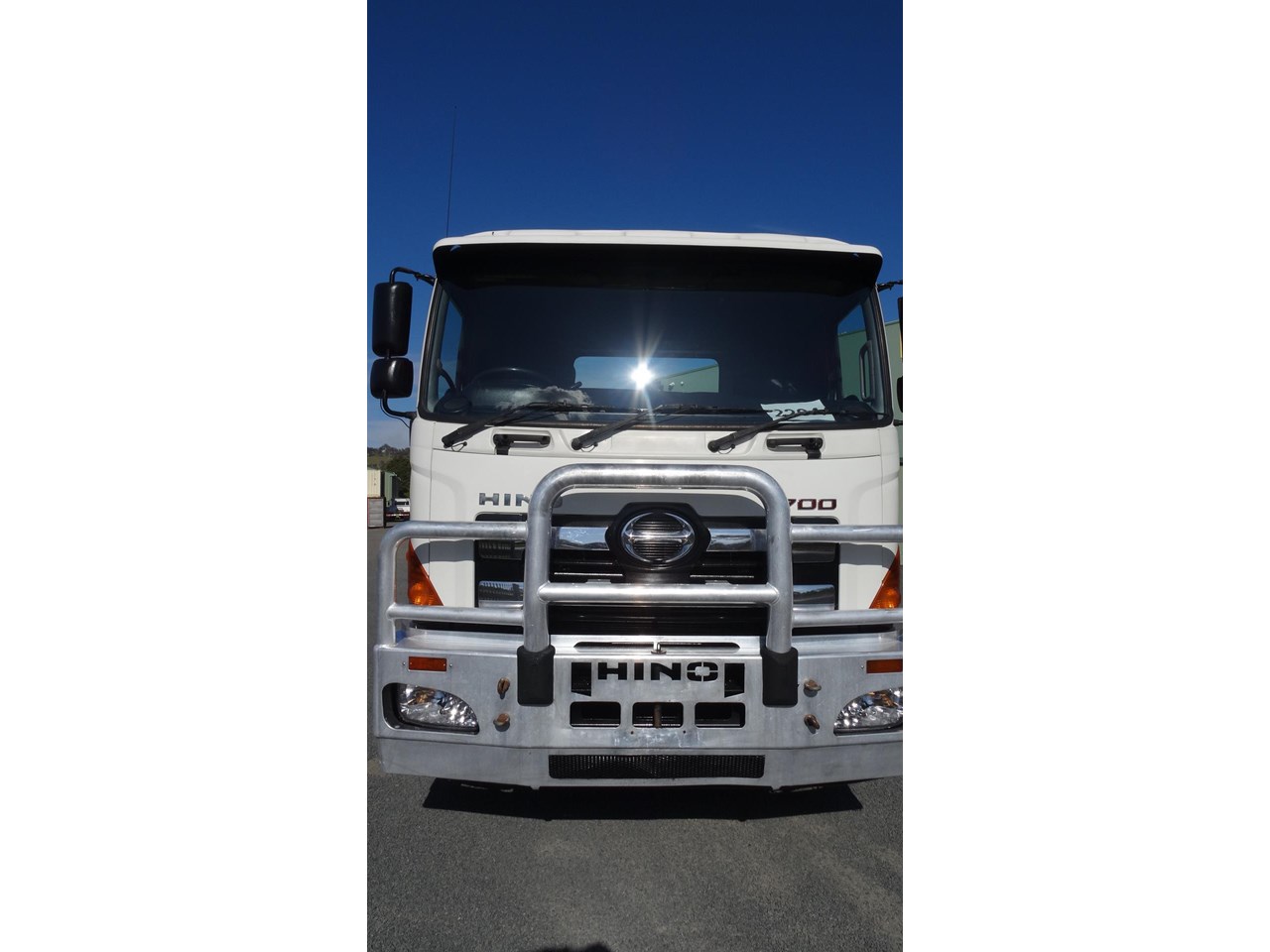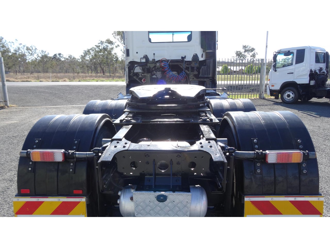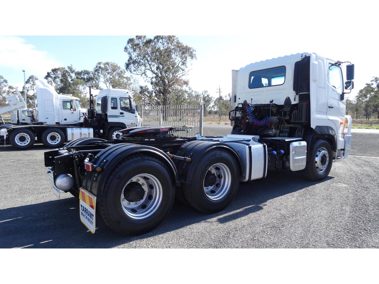 HINO 700 SS1E 6x4 PRIME MOVER, YEAR 02/2011, 539600 KMS, 480 HP TURBO INTERCOOLED, 12 SPEED AUTOMATIC ZE - AS TRONIC, 28000 GVM, 72000 GCM, 4000MM WHEELBASE, 4650MM OF CHASSIS BEHIND THE CAB, AIRBAG SUSPENSION, CROSS LOCKS, DIFF LOCKS, ALLOY BULLBAR, CRUISE CONTROL, JOST AIRLOCK SLIDING BALL RACE TURNTABLE, S/N - 2204, PRICE - $55,000.00 INC GST, LOCATED IN ARMIDALE NSW