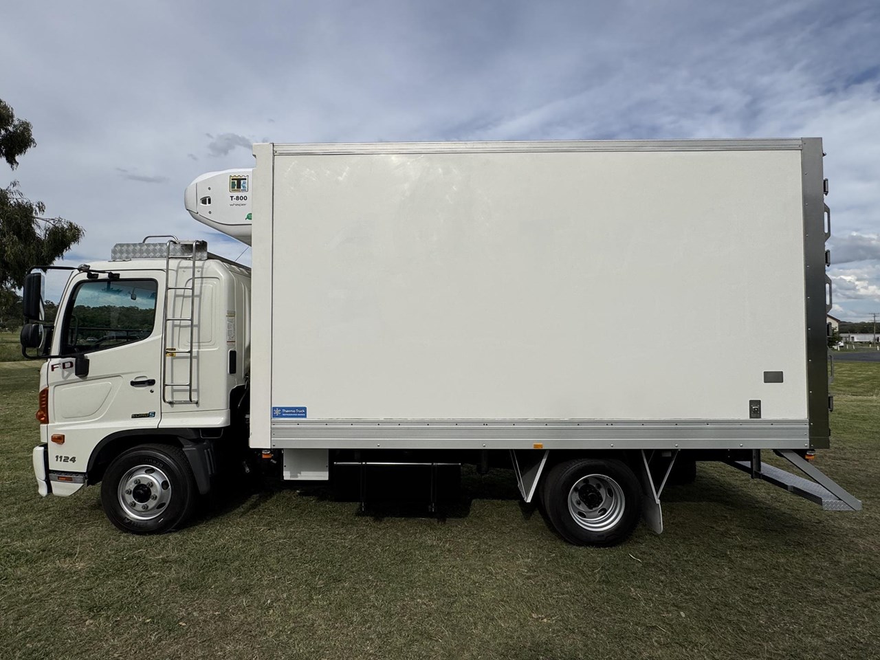 2013 Hino FD 1124 500 Series 4x2 Refrigerated Pantech. GVM 11000. GCM 20000. Hino 240HP Intercooled Turbo Diesel,6 Speed Manual Transmission Air Conditioning,3 Seats with Drivers Suspension Seat Reversing Camera,Canvas Seatcovers,Rubber Floor Mats,Dash Mat Stoneguard,Weather Shield Fitted with Thermo Truck Refrigerated Pantech Body with 3 Phase Backup Power Supply Tri-Opening Rear Doors,Rear Step & Slide Out Ramp Thermo King T-800 Refrigeration Unit Internal L-4300 x W-2300 x H-2160. Wheelbase-3800 GVM 11000. GCM 20000. Tare 5640. Well maintained truck with a large folder of service receipts Sold with current roadworthy certificate Price includes GST & Tax Invoice Competitive finance available Delivery arranged to any state Independent inspections welcome Other Freezer Trucks in stock including Isuzu,Hino,UD,Mitsubishi Fuso,Hyundai Mighty Refrigerated Pantech,Fridge Truck,Freezer Van,Curtainside,Traytop,Cab/Chassis,Service Body,Tipper,Beavertail,EWP,Prime Movers,Water Trucks & Fire Trucks Ex Govt,Council,Forestry,National Parks,SES,Rescue Squad,Fire & Rescue Service,Rural Fire Service,Coles,Woolworths & Major Fleets Established 1991 with over 200 Trucks in stock