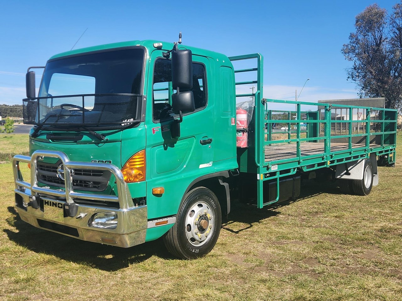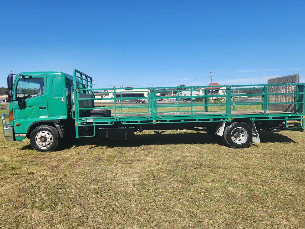 2013 Hino FE 1426 500 Series 4x2 Traytop. One Fleet Owner first delivered 2014. Hino 260HP Intercooled Turbo Diesel,6 Speed Transmission,3 Seats Air Conditioning,Polished Alloy Bullbar,Reversing Camera Uniden UHF,Fire Extinguisher Fitted with 2014 Minibody Engineering Steel Tray Body with Checkerplate Steel Floor,Removable Gate Sides & Underbody Toolbox Dhollandia 750Kg Remote Control Tailgate Loader Tray L-6900 x W-2420. Tailgate Loader W-1800 x H-1300 GVM 14000. GCM 22000. Wheelbase 5950. Sold fully serviced with current roadworthy inspection Price includes GST and Tax Invoice Competitive finance available Delivery arranged to any state Independent inspections welcome We have other similar size trucks in stock including Hino 500 Series GH,FG,FE,FD,FC,FT,GT Isuzu FTR,FSR,FTS,FSS Mitsubishi Fuso Fighter FM & FK UD PK & MK Condor Mercedes Atego Iveco Eurocargo Volvo,Scania MAN,DAF 4x2 4x4 6x4 Single Cab & Dualcab Tabletop,Service Body,Cab/Chassis,Tipper,Cranetruck,Beavertail,EWP,Sweeper truck,Curtainside,Refrigerated Pantech,Water trucks & Fire trucks Ex Govt,Council,Forestry,National Parks,SES,Rescue Squad,Fire & Rescue Service,Rural Fire Service & Major Fleets Established 1991 with over 200 Trucks in stock