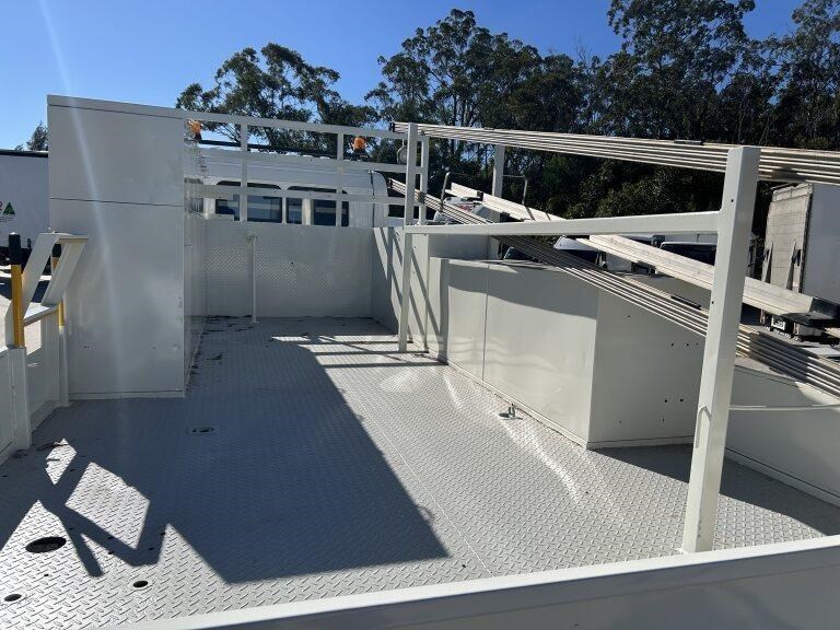 The service body features 13 storage toolboxes, kerb side access ladder and measures up at 6m (L) x 2.45m (W).