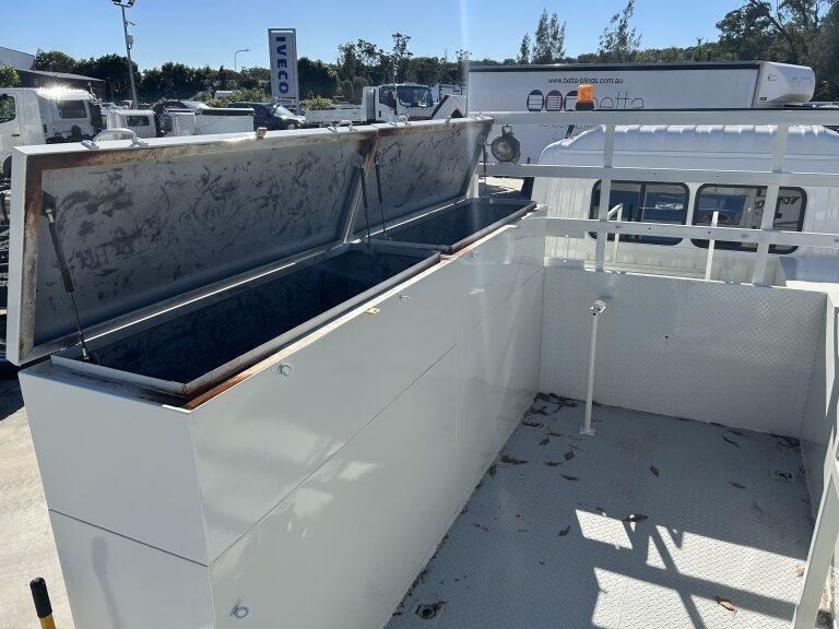 The service body features 13 storage toolboxes, kerb side access ladder and measures up at 6m (L) x 2.45m (W).