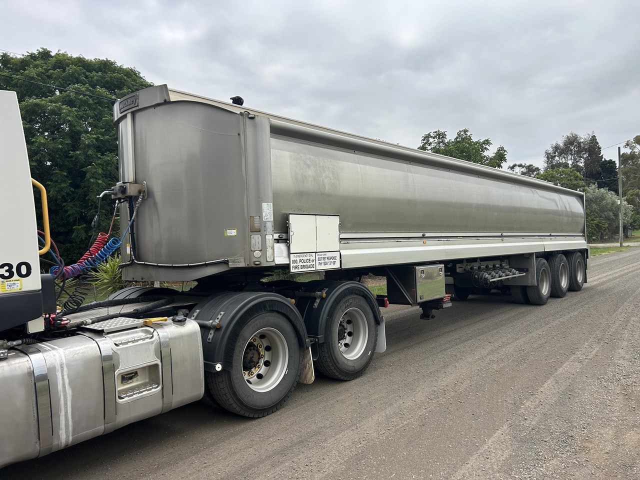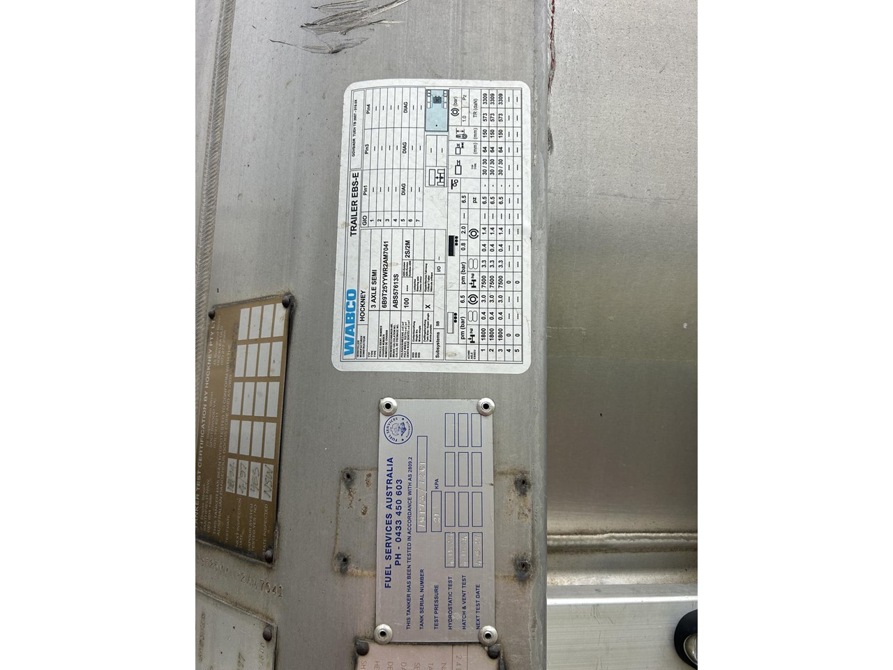 1994 build 45000 litre BLVR 5 compartments Nov 2024 hydro hatch and vent , K Hitch axles on BPW airbag , EBS brakes , 10 stud Alcoas , LED lights ,Tram trak fall protection , 6mm heads 4.4 mm walls , cheap fuel or clean water tanker .