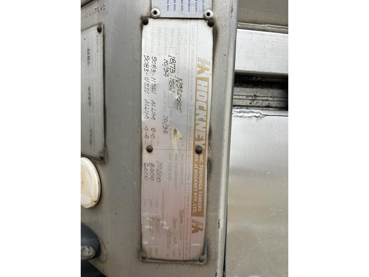 | Title | 1994 HOCKNEY TRIAXLE ALUMINIUM FUEL TANKER |