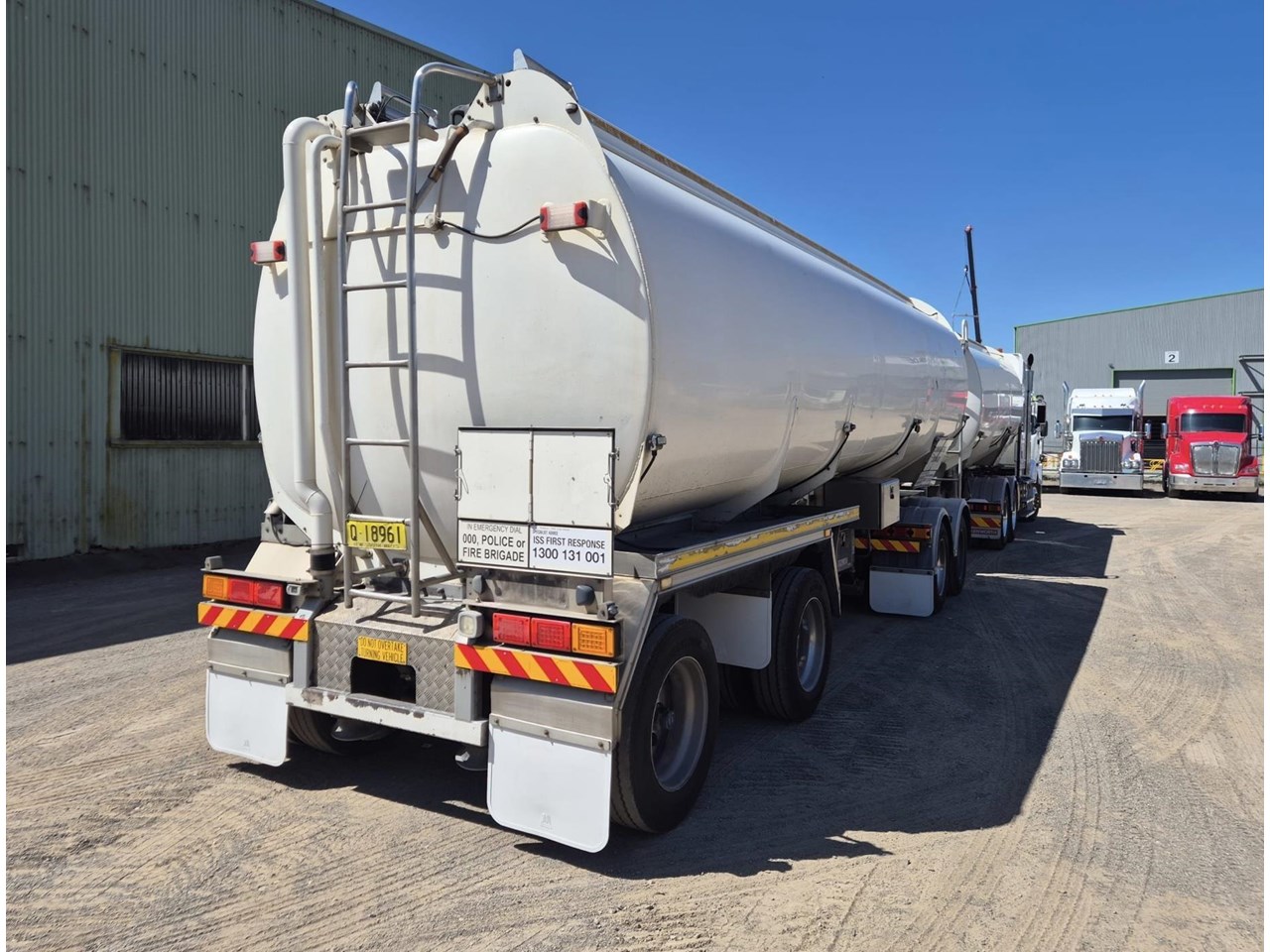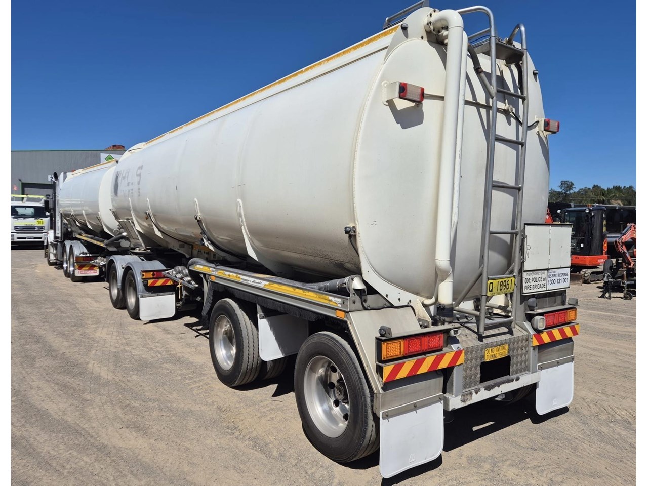 Holmwood 2003 build 19 metre b double fuel tanker set . Bottom load vapour recovery , current hydro , safety rails and wind down legs .Hendrickson axles with EBS brakes on airbag suspension , good rubber and running gear . LED Lights , straight from a major fuel transport company .