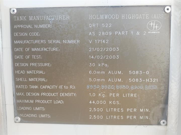 | Title | 2003 HOLMWOOD HIGHGATE TS36-ABT-NSD 44,000L |