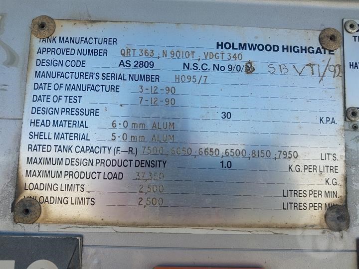 | Title | 1990 HOLMWOOD HIGHGATE TS36-SBT-NSS 43,350L |