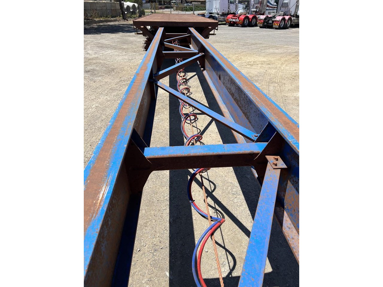 K Hitch Axles on Spring Suspension, B Double/Road Train Rated, 10 Stud Steel Wheels, 3 Stage Extendable to MAX 21.4m, Container Pins, 2" Pin, 2 x Toolboxes, Gates, Spare & Carrier, Stillage Rack with Bolsters, LED Lights, Ringfeder, LED Lights, Water Tanks.