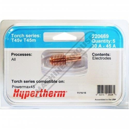 HYPERTHERM 220669 Hypertherm 45A Electrode Powermax45 with T45v/T45m Torch (Does not suit 45XP) (Pack of 5)