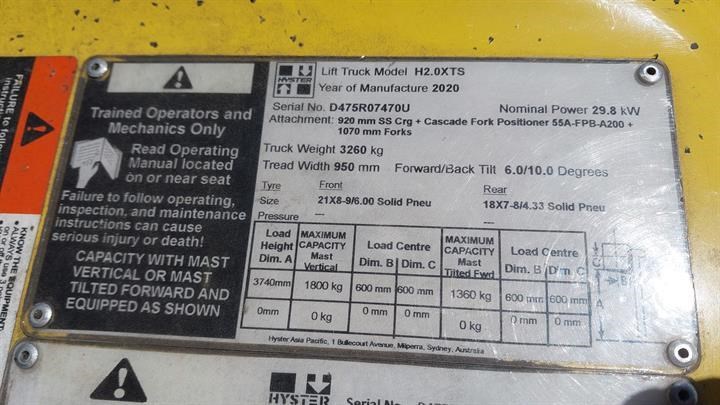 | Title | 2020 HYSTER 2.0 H2.0XTS |