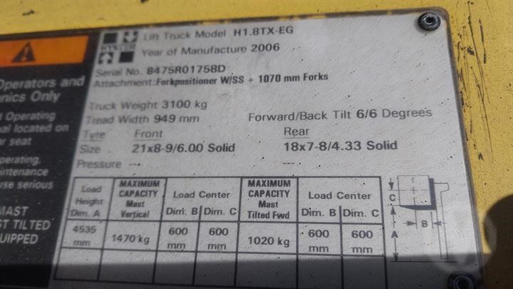 | Title | 2006 HYSTER H1.8TX-EG Fortis 1.8 |