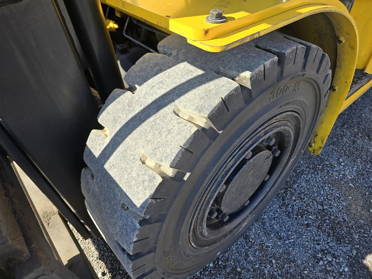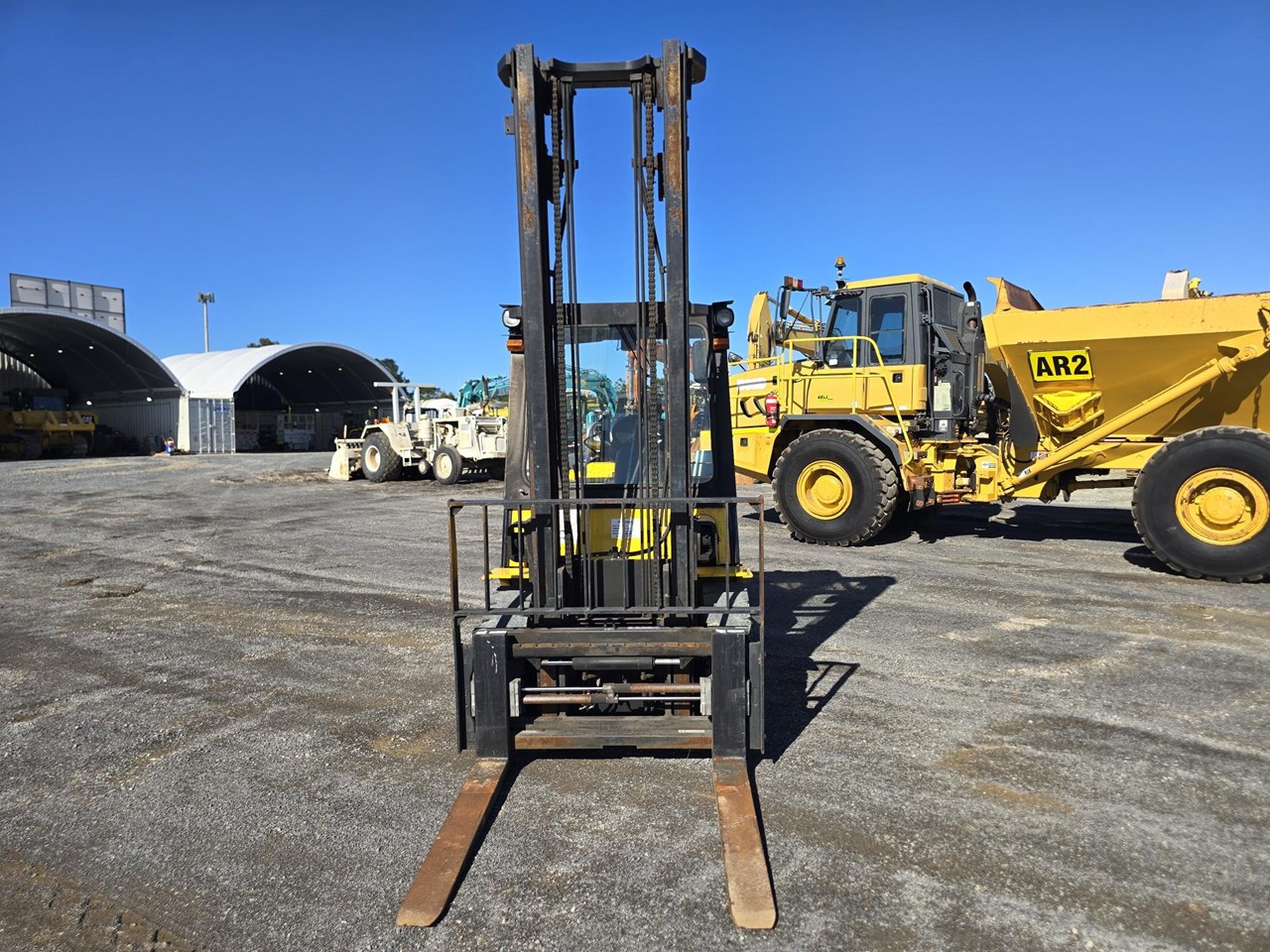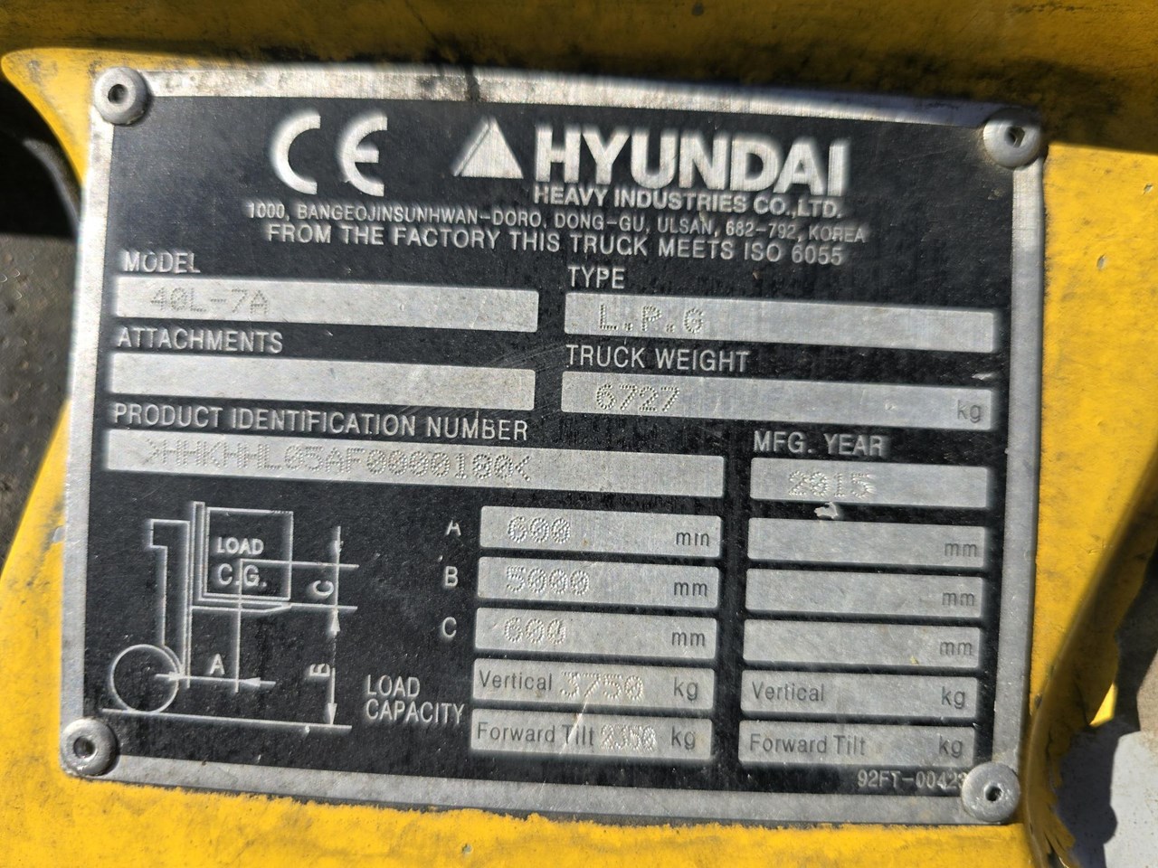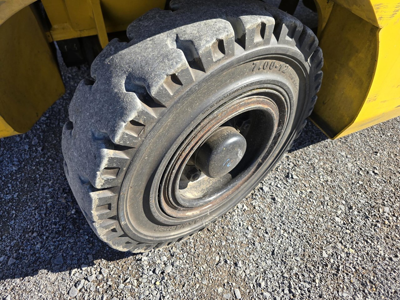 2015 Model. 6900Hrs Showing. Single Stage Mast 5000 mm Max Lift Height, 1200 mm Forks, Side Shift, Fork Positioner, Solid Pneumatic Tires, Vortec V6 LPG Engine