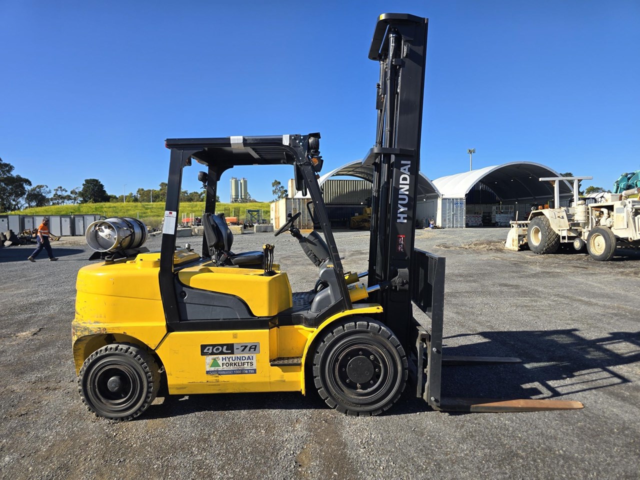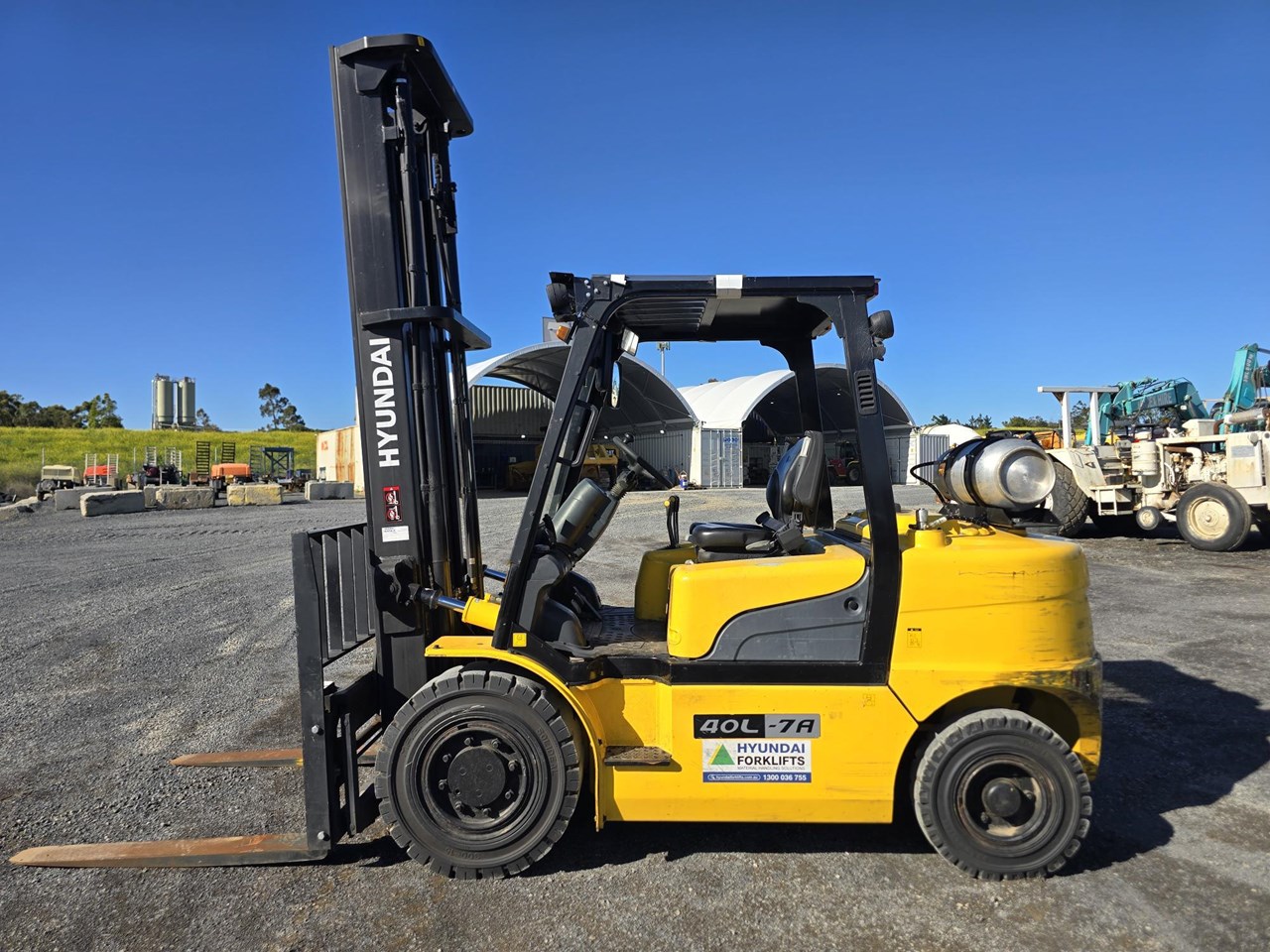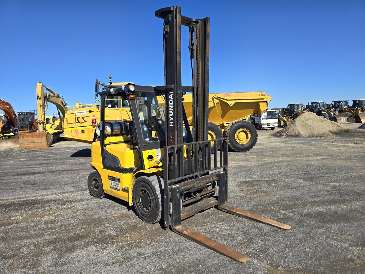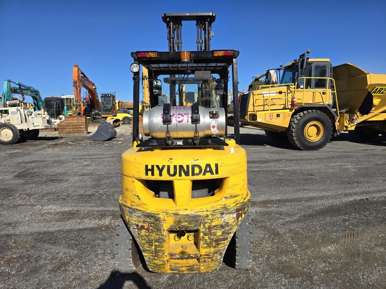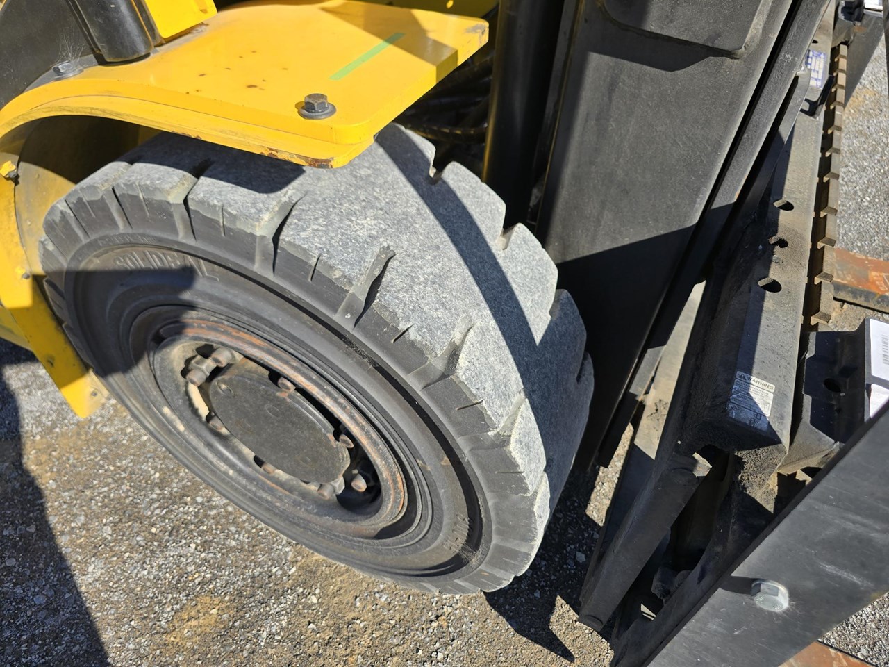 2015 Model. 6900Hrs Showing. Single Stage Mast 5000 mm Max Lift Height, 1200 mm Forks, Side Shift, Fork Positioner, Solid Pneumatic Tires, Vortec V6 LPG Engine