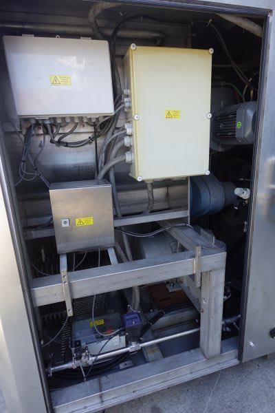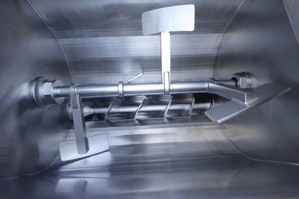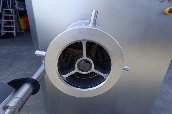 Unit is a stainless steel food grade mixer/grinder for meat products.