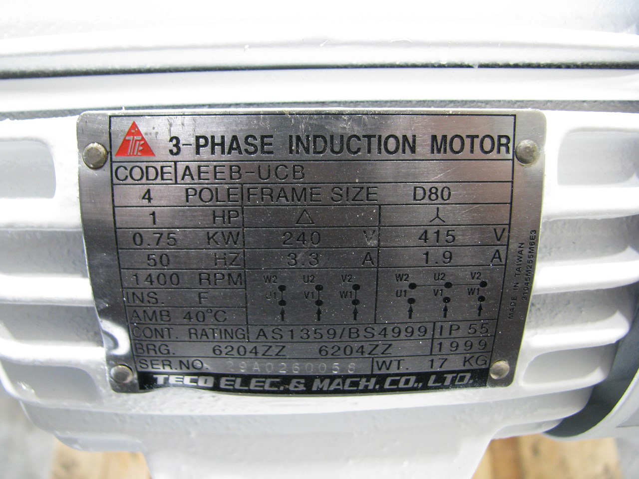 - Power: 0.75 kW / 1 HP at 1400 rpm