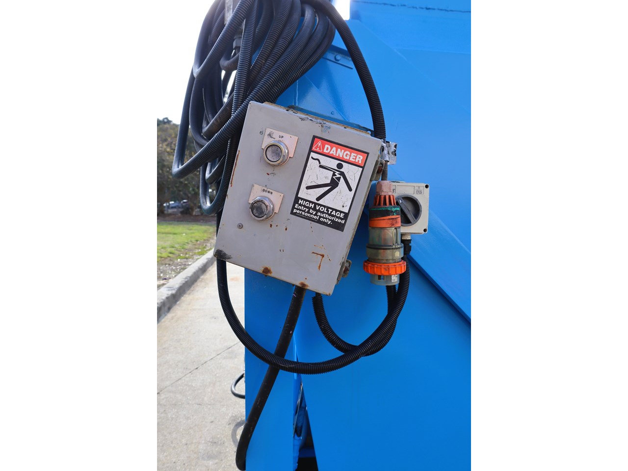 Steel constructed bin lifter used for lifting large bins. In great condition and is equipped with a control panel with simple on/off and up/down buttons.