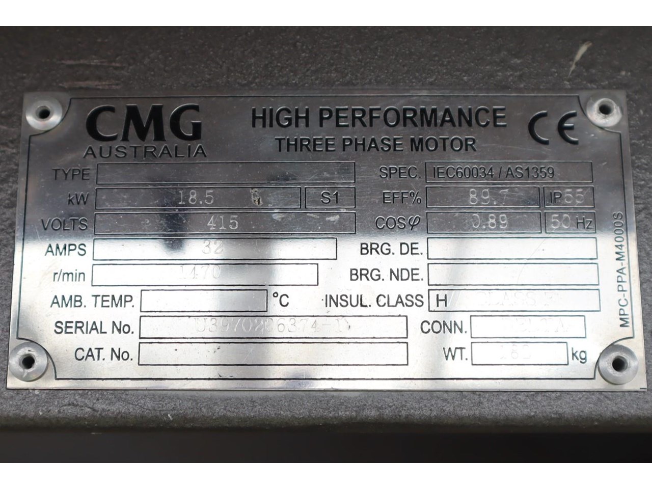 Used industrial granulator equipped with a 18.5 kW motor. Designed for size reduction within recycling and material recovery systems, providing efficient granulation of pre-processed materials prior to downstream separation or refining stages.