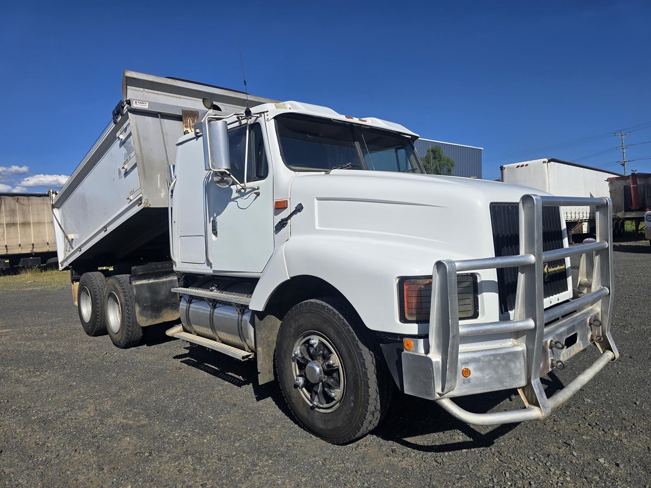 International S3600 Steel Tipper Truck, Cummins N14, 18sp Roadranger, New steel bin fitted, 2 way tailgate, Tow Coupling suit Plant trailer, Red Dot A/C, Excellent condition