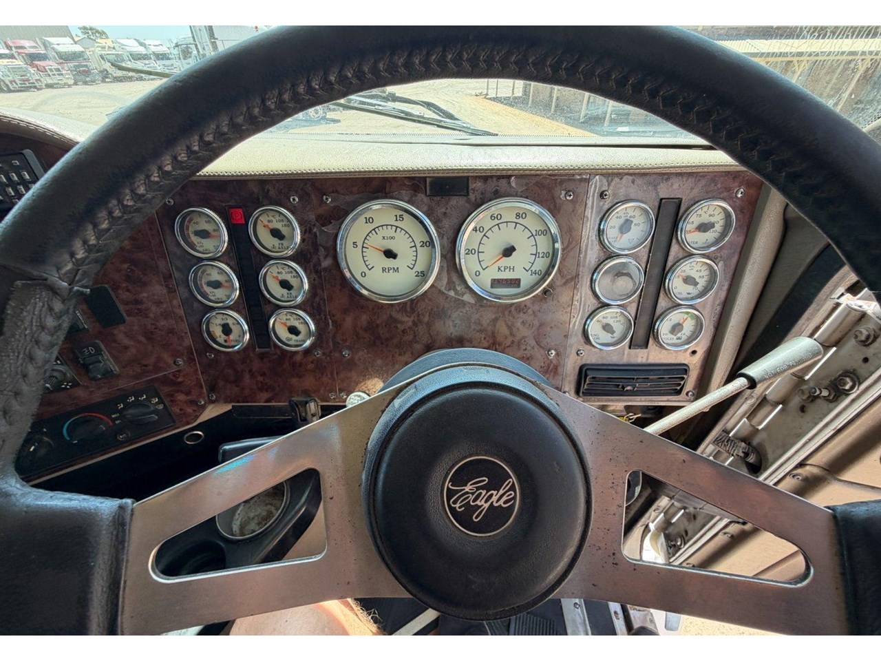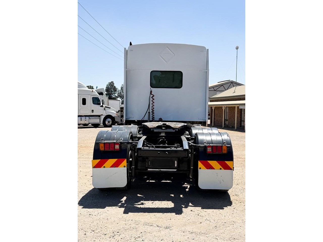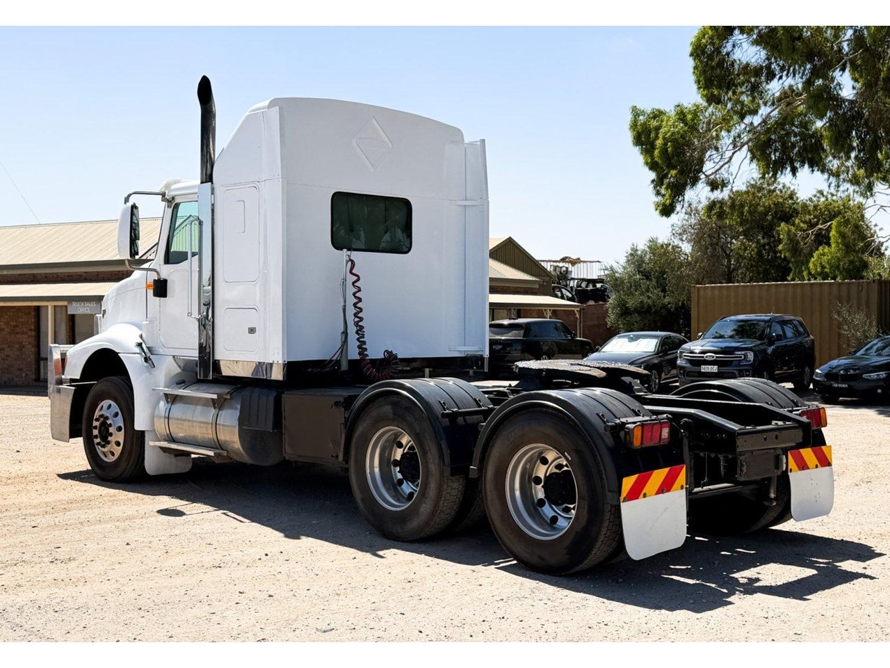2007 International Eagle 9200i 6x4 Prime Mover, Cummins ISX Engine @ 500Hp, 18 Speed Road Ranger Transmission, Meritor RT46-160 Rear Axles with Cross Lock to Rear Axle @ 4.3 on Henderickson HAS460 Air Bag Suspension, Alloy Bull Bar with Psot Lights, Allow 10 Stud Wheels, Round Tanks, Sun Visor, Plastic Drive Guards, Single Exhaust Stack, Chassis Mounted Tool Box, Fixed QRTT, Air Ride Drivers Seat, Wood Grain Dash,
