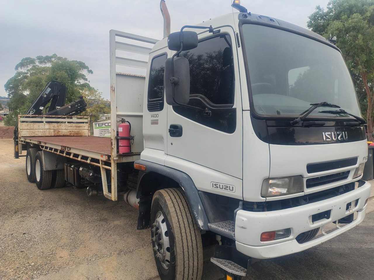 2005 Isuzu FVZ1400 6x4 Crane truck, 8m tray with rear mounted Hiab 166B-3 Hi Duo crane. Steel tray 8m long