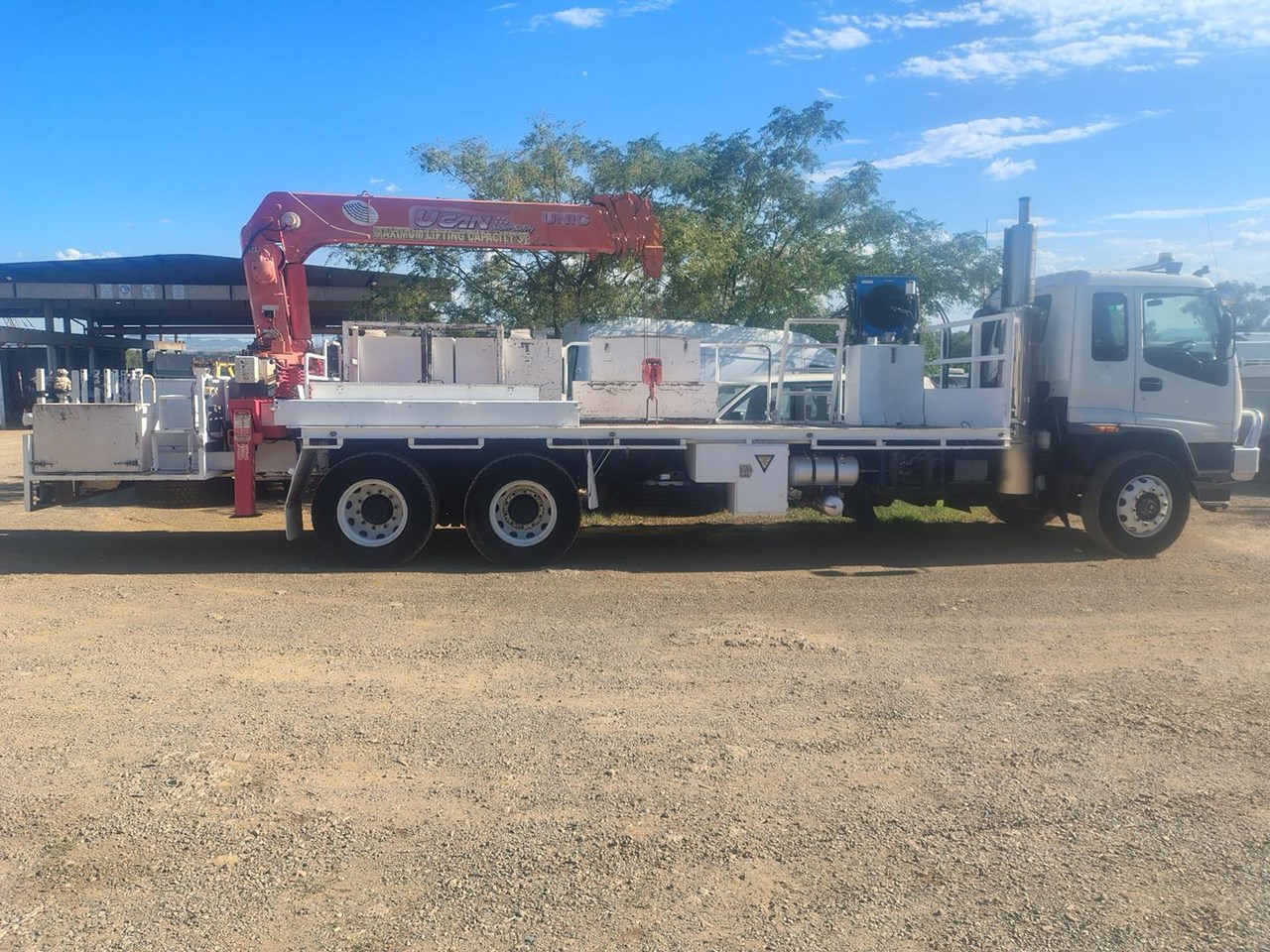 2007 Isuzu FVZ 1400 Crane Truck, 6x4 Manual Transmission, very low original kms, Unic 3t crane which has barely been used, extendable boom with running rope, very clean and tidy truck, ex corporate truck, well maintained, Ring feeder tow hitch with air brakes for trailer. Tool boxes can be removed to make a flat tray truck.