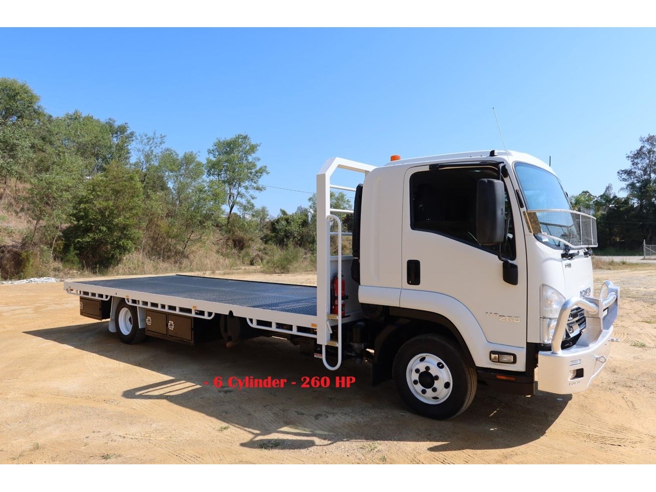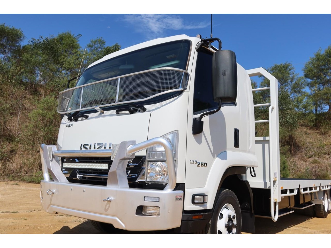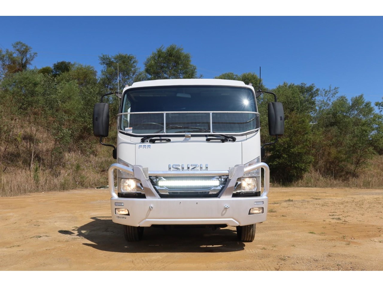 1 x only used 12 / 2019 Isuzu FRR 110-260 LWB 7.8 litre 6 CYLINDER - turbo / intercooled, 260hp, 6 speed manual inc an alloy bullbar, GME UHF radio, an L.E.D light bar, in cab air blower and a windscreen stone guard.