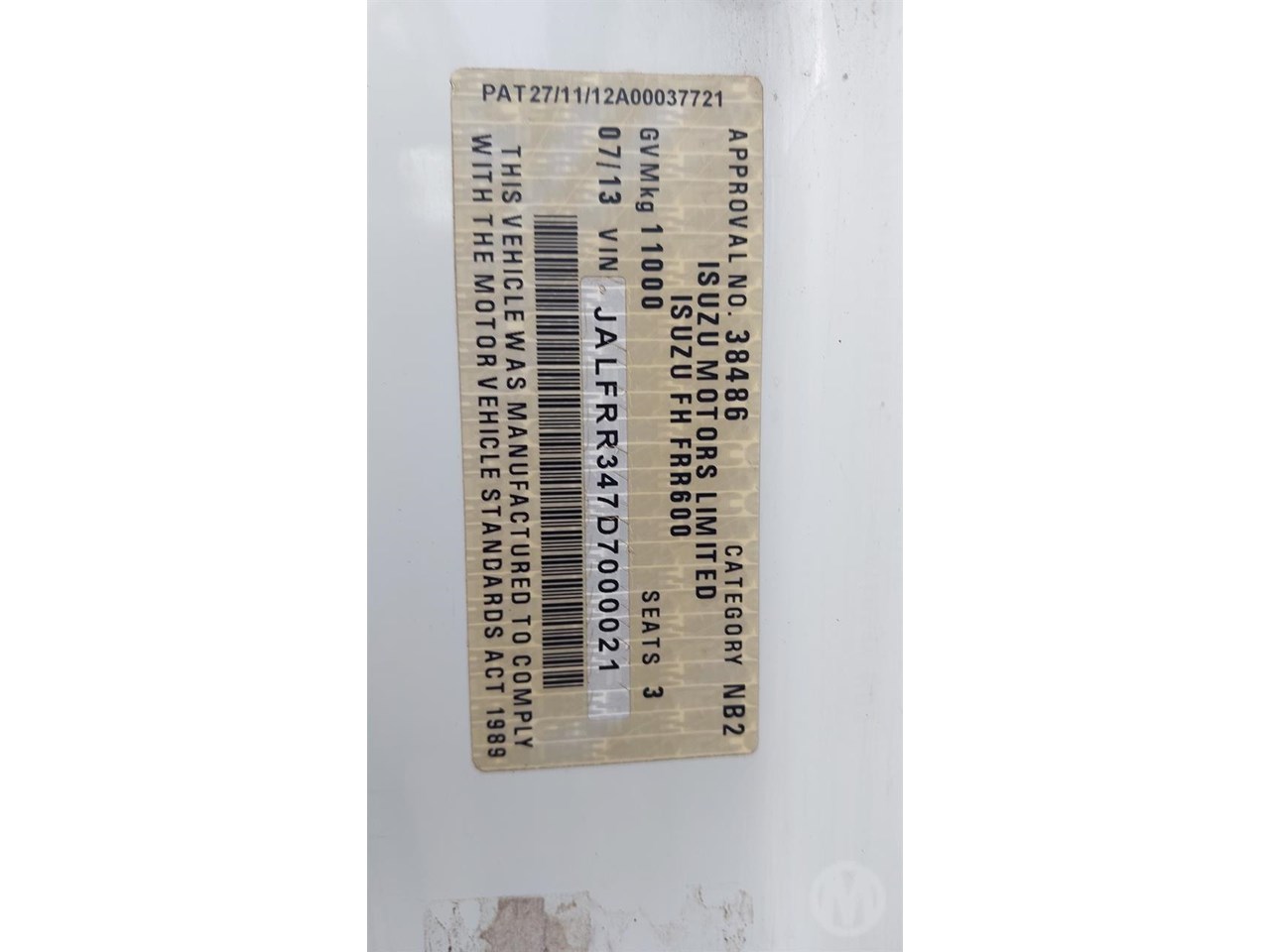 | Title | 2013 ISUZU FRR600 |