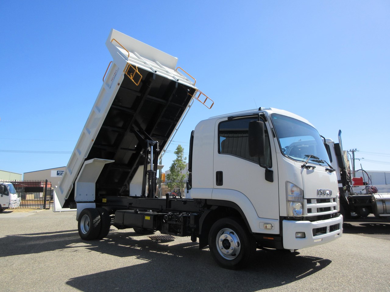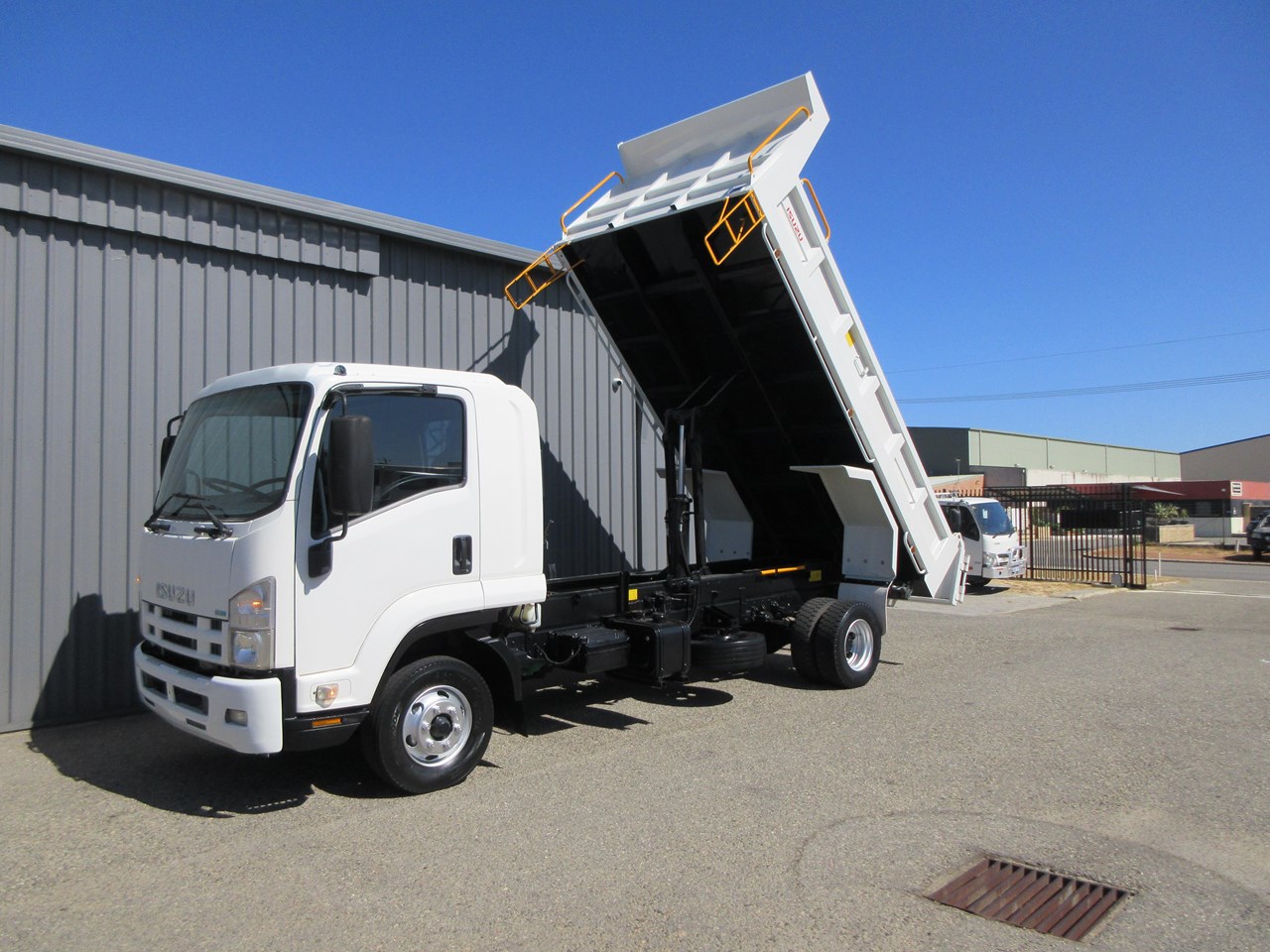 2011 Isuzu FRR 600, Ex Government Truck fitted with a BRAND NEW Isuzu Tipper body, 2x way tail gate with steps each side with grab handles, new PTO Pump and in cab controls to suit, 80L hydraulic oil tank & body lock fitted. Tipper size is : 4400mm long x 2280mm wide x 520mm high. Fixed Sides, Heavy Duty cab protection rack, under tipper shovel & broom rack. body safety prop.