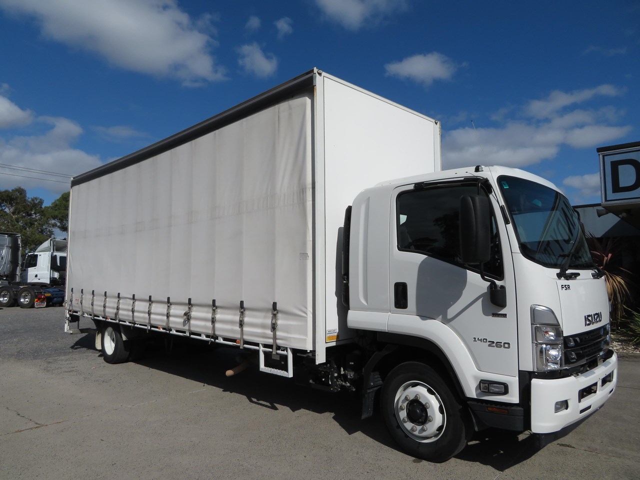 Isuzu FSR 140/260. A low 53,821 kms. Full tail gate loader. Curtainsider 12 pallet 7,502mm long 2,400mm wide 2,600mm high. Automatic. 14 GVM. Very clean truck. Reverse camera, gates etc. Sold with RWC & Reg in Victoria.