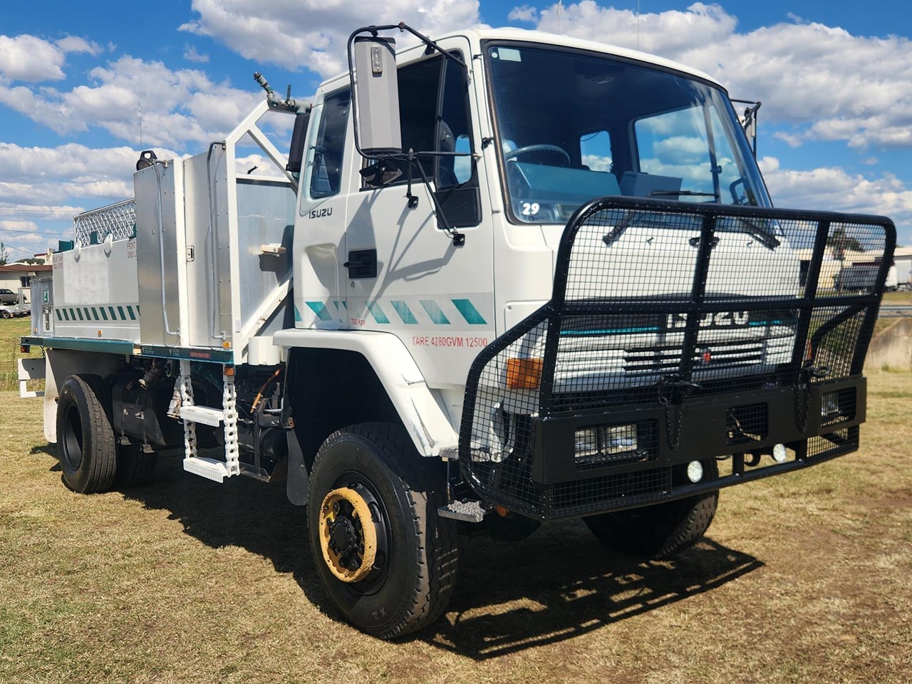 1996 Isuzu FTS700 4X4 Single Cab Firetruck. Only 6,225 Kms. 4000 Litre Water Tank. Isuzu 6.5 Litre 6 Cylinder Diesel,6 Speed Transmission with High/Low Range 4WD Air Conditioning,3 Seats Steel Bullbar with Spotlights Operational Lights & Sirens,Roof Sprays Fitted with 4000 Litre Water Tank,Lombardini Diesel with Regent Fire Pump with Dual Hose Reels & Robwen Foam Suppression System Multiple Toolboxes & Work Lights Water tank with Hand Wash Station Body L-4700 x W-2450. Wheelbase-4200. GVM 12500. GCM 18000. Tare 4280. Sold fully serviced with NSW or QLD Roadworthy Price includes GST & Tax Invoice Competitive finance available Delivery arranged to any state Independent inspections welcome Other 4x4 & Firetrucks in stock including Isuzu FTS800,FTS750,FTS700,FSS550,FSS500,NPS300,NPS250,NPR400,NPR300,FTR800 Hino FT,GT,GD,FE Mitsubishi Fuso Canter & FM600 UD CW45 Volvo,Scania,Mercedes Benz,Freightliner,Iveco Single Cab & Dualcab 4x4,4x2,6x4,8x4 Ex Govt,Council,Forestry,National Parks,SES,Rescue Squad,Fire & Rescue Service,Rural Fire Service & Major Fleets