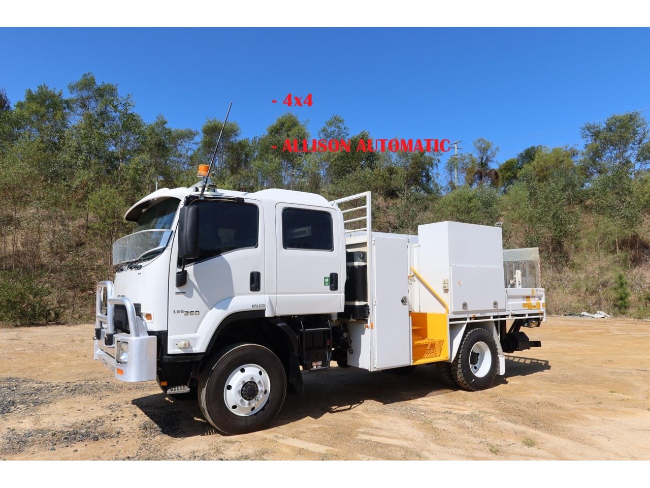 1 x only used 03 / 2016 Isuzu FTS 139-260 Auto 4x4 (4wd) Crew Cab (dual cab) 7.9 litre, 6 cyl, 260hp, 6 speed ALLISON AUTOMATIC inc air conditioning, an alloy bullbar, UHF radio, windscreen stone guard and sun visor.