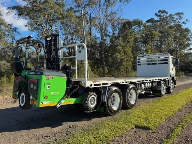 New Isuzu FYJ 300-350 Auto (Non DPF / AdBlue), 8x4 with diff lock, airbag suspension, 6 years Australia wide warranty, Sammut H/D tray, LED lights, 5mm floor, toolbox, removable rear gate, fitted with a new all-electric Moffett E4 with 3wd, zero emissions, silent operation, and a better return on investment than the diesel equivalent. This comes complete with engineers cert. POA