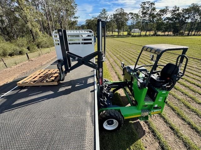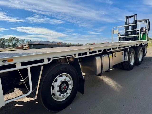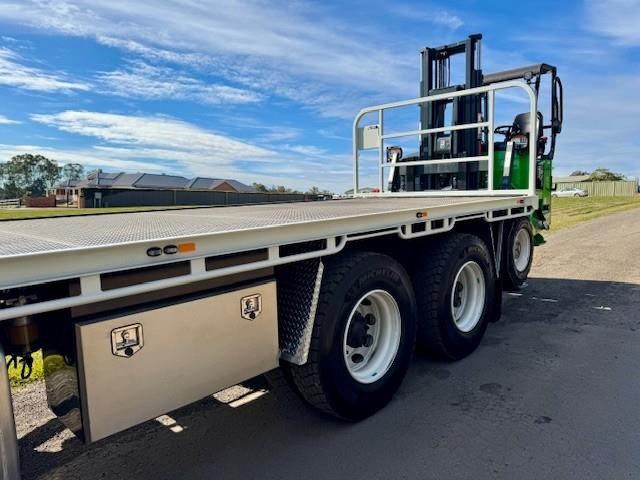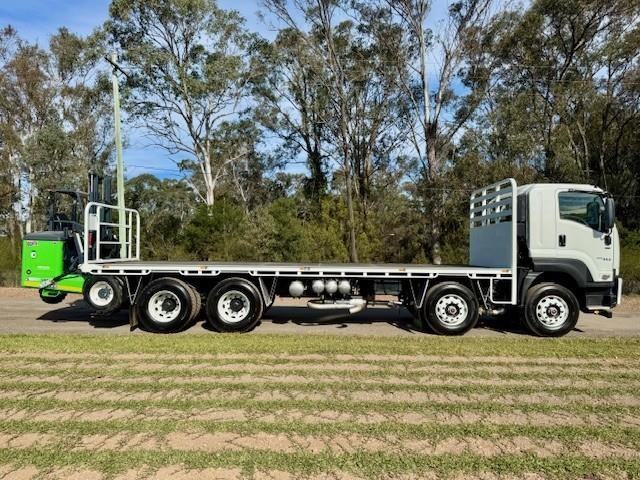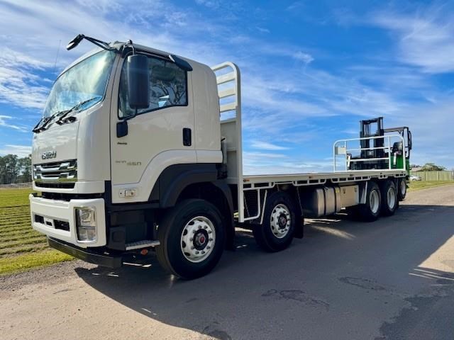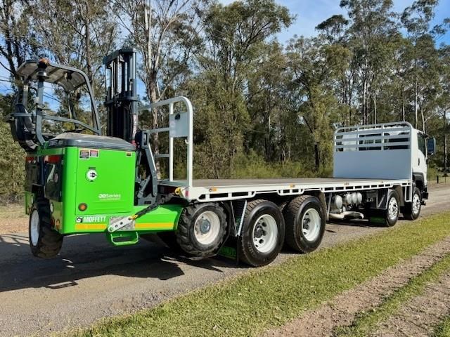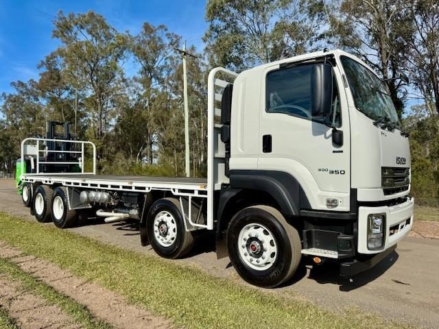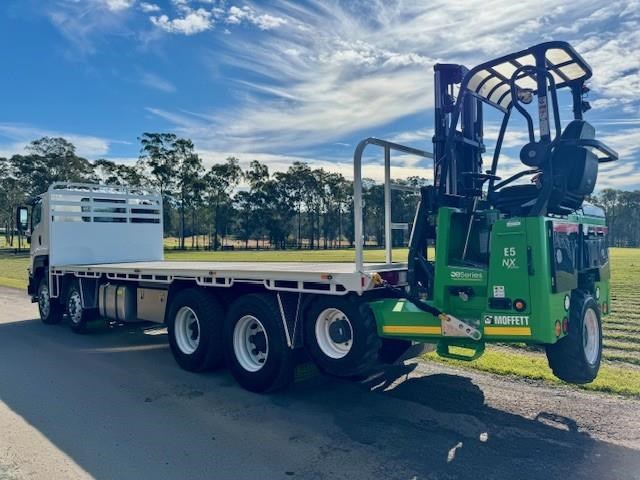 New Isuzu FYJ 300-350 Auto (Non DPF / AdBlue), 8x4 with diff lock, airbag suspension, 6 years Australia wide warranty, Sammut H/D tray, LED lights, 5mm floor, toolbox, removable rear gate, fitted with a new all-electric Moffett E5 with extra-reach mast for one-sided unloading, 3wd, zero emissions, silent operation, and a better return on investment than the diesel equivalent. This comes complete with engineers cert.