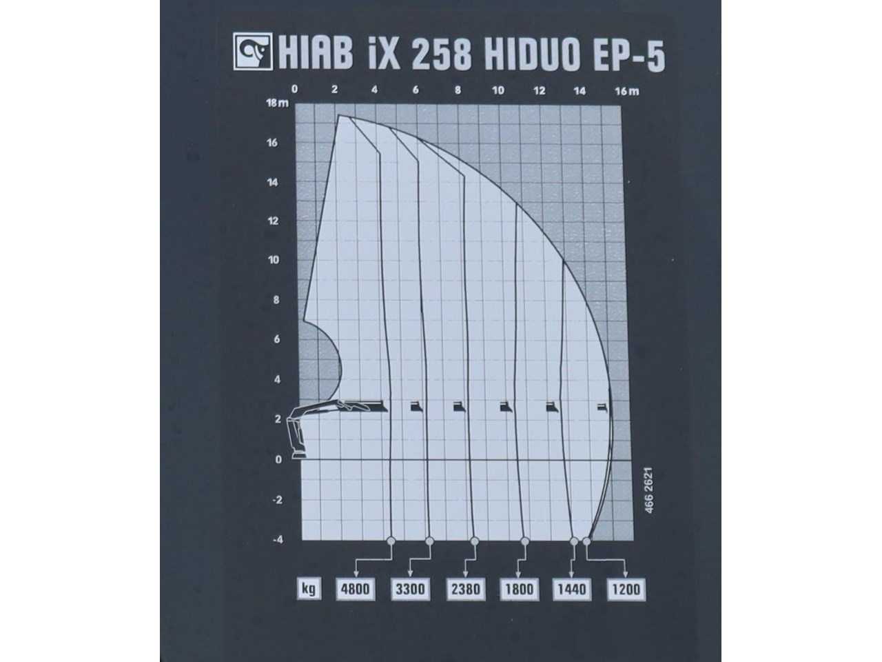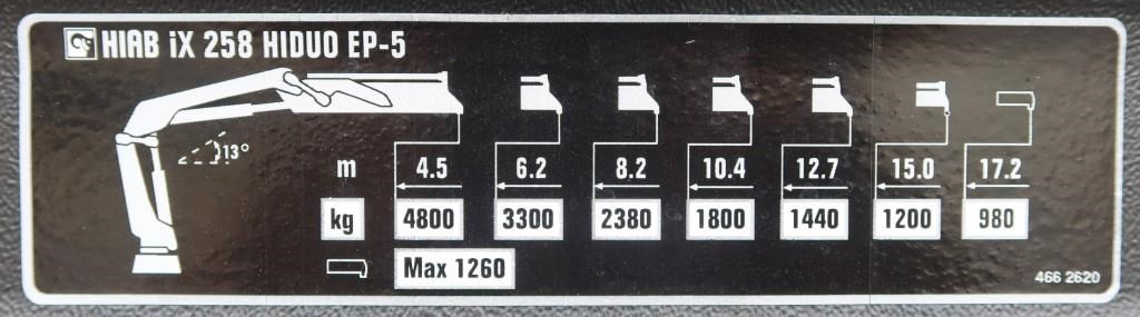 The HIAB 258HDEP5V40 Hi Duo crane features include: A Lifting capability of;