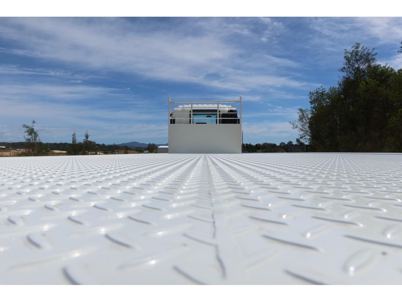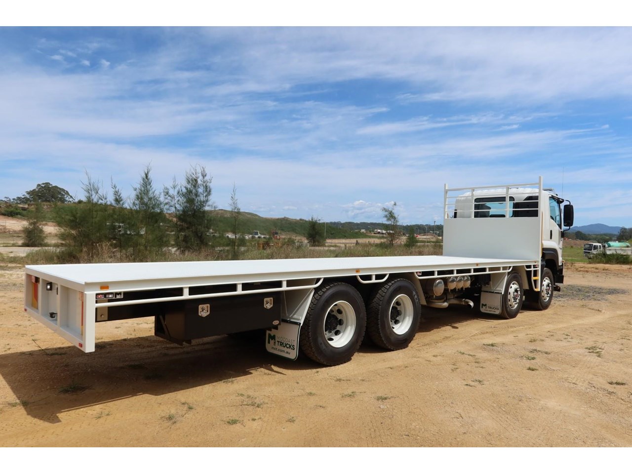 Fitted with NEW Midcoast Trucks steel tray (Internally approx 9.6m L x overall 2.5m MAX WIDTH) with a 5mm thick steel checker-plate floor.