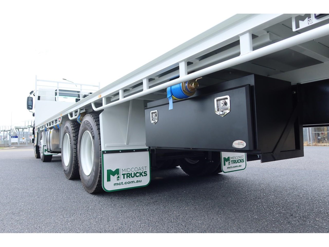 Fitted with NEW Midcoast Trucks steel tray (Internally approx 9.6m L x overall 2.5m MAX WIDTH) with a 5mm thick steel checker-plate floor.