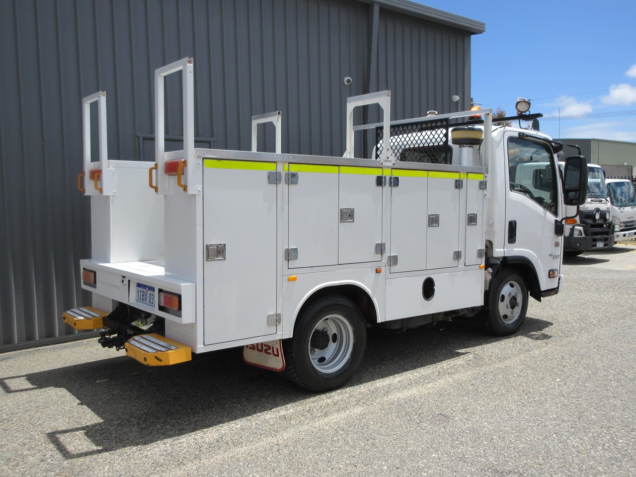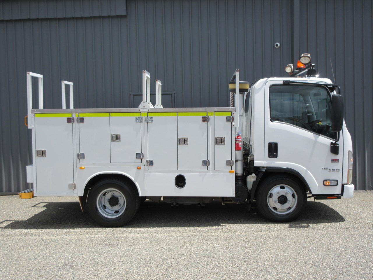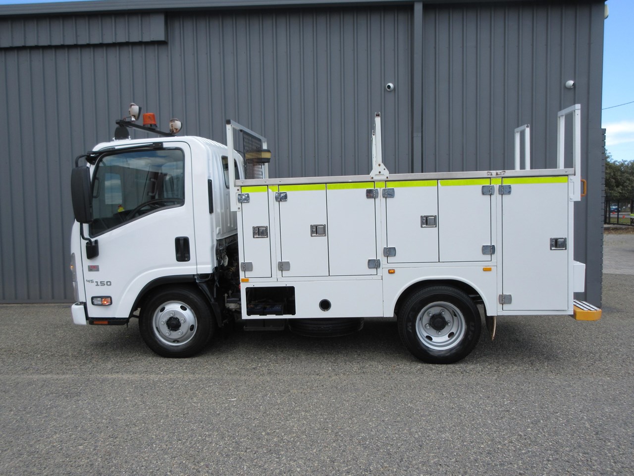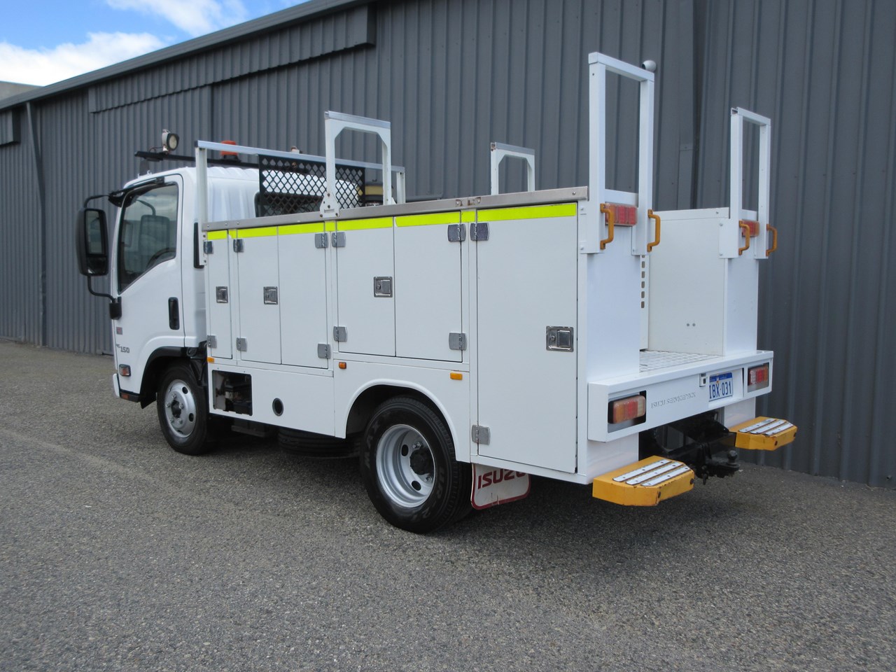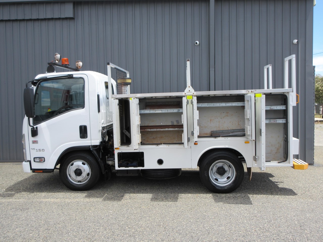 2017 Isuzu NLR 45/150 Service Pack, delivered with this awesome tool box style body, side doors and compartments with adjustable internal shelving, front box is the complete width, centre tray section with tie down points to carry large items with set of swing gates, rear steps & grab handles. 50mm Tow bar & trailer electrics, Roof mounted bar with adjustable LED worklights & amber beacon. Overhead racks to carry pipes/steel/timber etc . A great truck for tradie type of work, can be driven with your standard Car licence. ( 4500 GVM)
