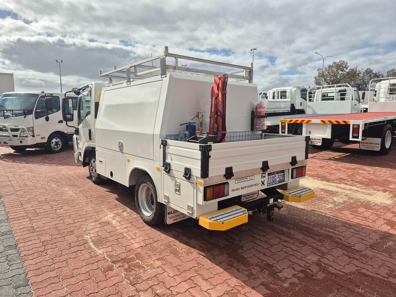 One of our MY21 2021 Model Isuzu NLR45-150 AMT "Service Body X". Features AMT (Automated Manual Transmission), towbar, under tray storage/toolboxes, reverse camera, and Service body with gull-wing doors on either side and fitted with a Full Custom Genuine Isuzu internal fit out, including a Redarc Inverter, Bullbar, Spotlights, UHF Radio, Fire Extinguisher, Vice and a Maxilift 50 Crane!