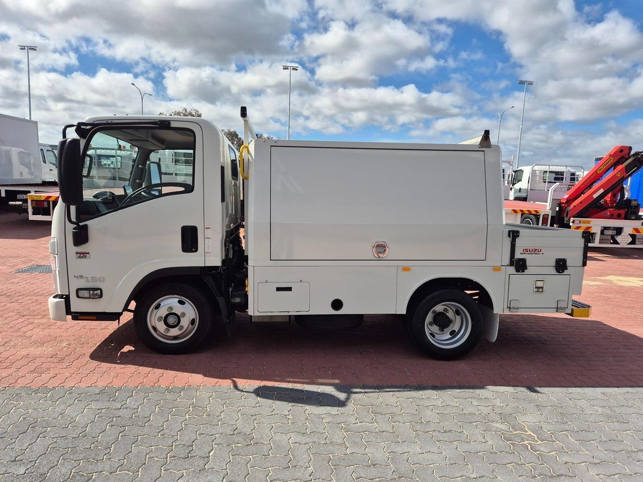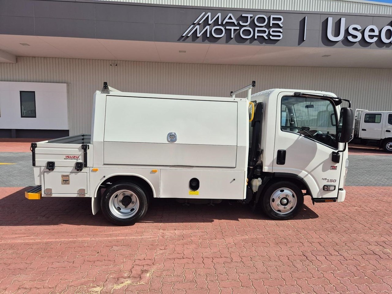 One of our MY21 2022 Model Isuzu EX DEMO NLR45-150 AMT "Service Body X". Features AMT (Automated Manual Transmission), towbar, under tray storage/toolboxes, reverse camera, and Service body with gull-wing doors on either side. The next stage of what has been a very popular model is the ready to work Servicepack range.