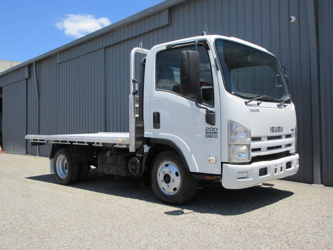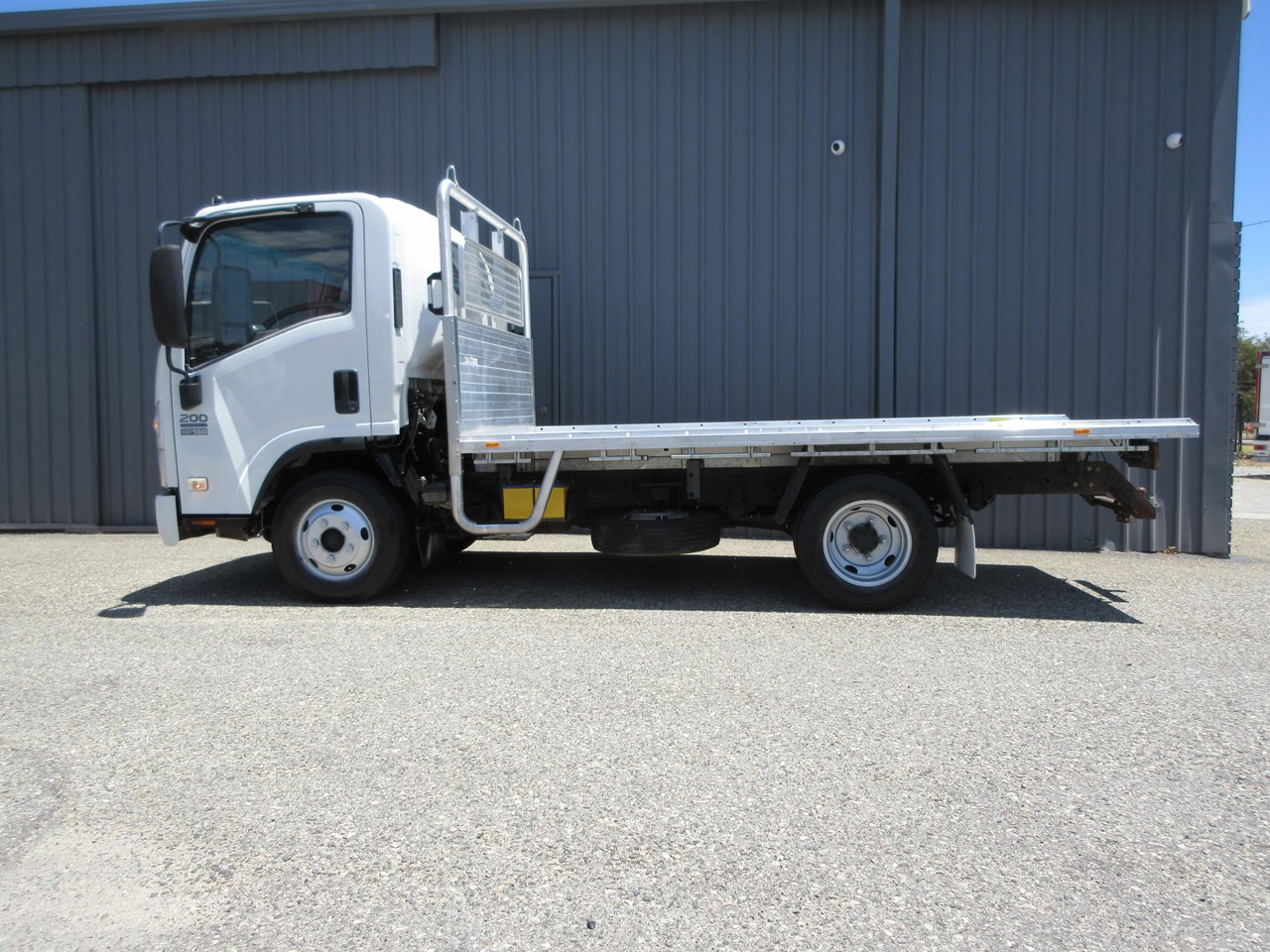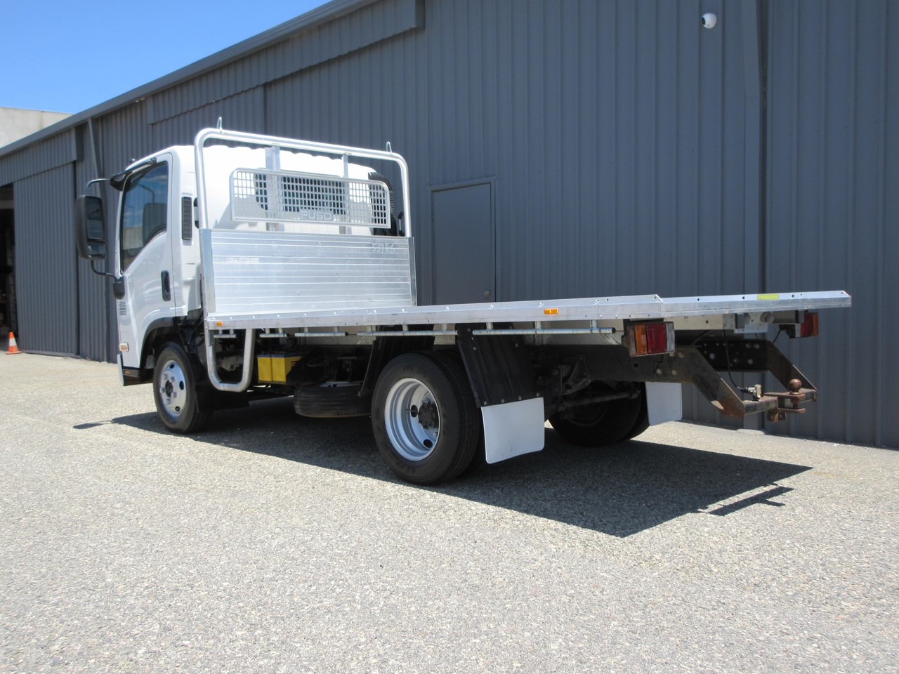 2008 Isuzu NNR 200 kitted out with a neat 3600mm x 2000mm Alloy Tray body & 50mm tow bar, full length tie down rails on the tray & horns to the cab rack, a great upgrade from the Ute or Van.