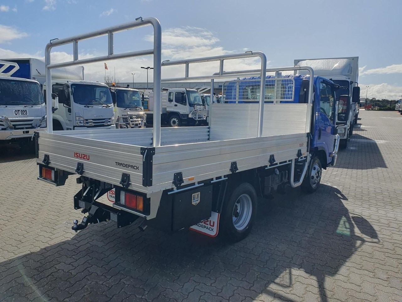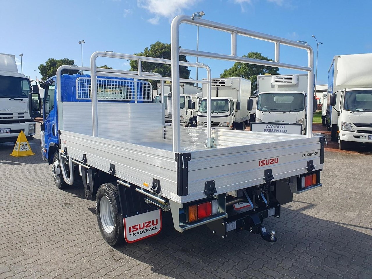 Complete with a 3.5m Drop Side Heavy Duty Alloy Tray with H Racks, Reverse Camera, Sat/Nav, Digital Radio, Ladder Racks, Steps, 4.5 Ton Towbar Tow Bar*, Bullbar, and finished in a Stunning Trans Blue" Duco", ready to go at $84,5000 Driveaway inc GST and 12 months License and Stamp Duty!