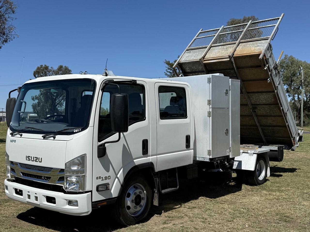 2017 Isuzu NPR65/190 Crew 4x2 Dualcab Tipper. Ex Council with only 163,569 kms. 7 Seats Isuzu 190HP 5.2 Litre Intercooled Turbo Diesel,6 Speed Manual Transmission Air Conditioning,7 Seats Towbar with Pintal Hitch,Electric Trailer Brakes & Reversing Camera Underbody Water Tank Fitted with Galvanised Steel Tipper Body with Underbody Hoist,2 Way Swing Tailgate & Separate Dropsides Tipper Body L-3130 x W-2400. Height of Sides-320 Large Toolbox Between Cab & Body L-2400 x H-1500 x W-650 GVM 6500. GCM 10000. Wheelbase 4140 Sold fully serviced with NSW or QLD Roadworthy Price includes GST & Tax Invoice Competitive finance available Delivery arranged to any state Independent inspections welcome Other Medium & Small Tippers in stock including Isuzu FRR500,NQR450,NPR400,NPR300,NPR275,NPR250,NNR200,NLR200,NPS300,NLS75/150 Hino 500 Series & 300 Series Dutro UD Mk Series Mitsubishi Fuso Canter & FK Fighter Single Cab & Crew Cab 4x2 & 4x4 Tipper,Tipping Tray,Traytop,Cab/Chassis,Service Body,Cranetruck,Beavertail,EWP,Sweeper Truck,Curtainside,Refrigerated Pantech Ex Govt,Council,Forestry,National Parks,SES,Rescue Squad,Fire & Rescue Service,Rural Fire Service & Major Fleets Established 1991 with over 200 Trucks in stock
